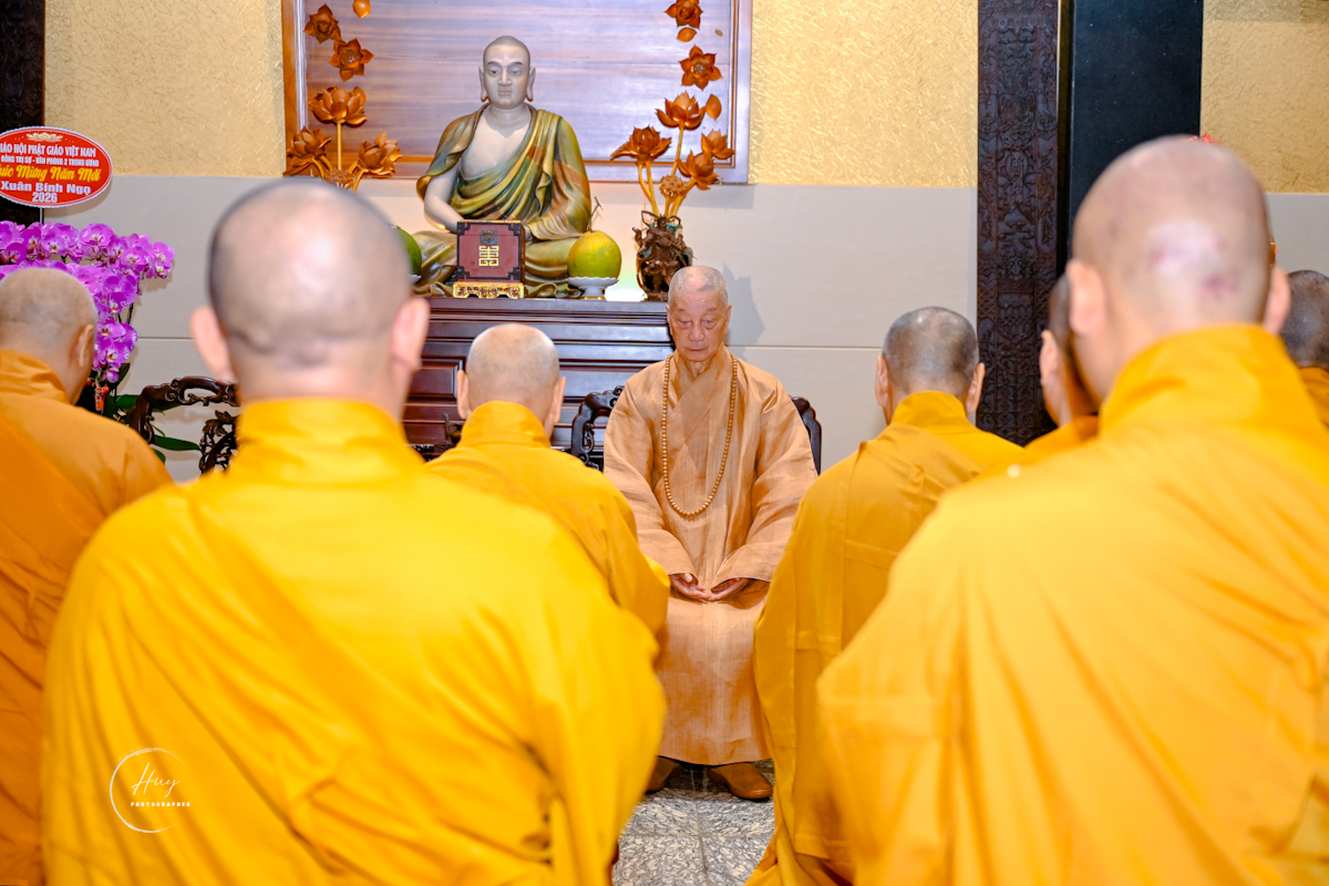 Tại chùa Huê Nghiêm, chư tôn đức Ban Thường trực Hội đồng Trị sự đối trước tôn dung Đức Pháp chủ, Trưởng lão Hòa thượng Chủ tịch dâng lời khánh tuế đạo thọ miên trường, tuệ đăng thường chiếu, để mãi là bậc tòng lâm thạch trụ lãnh đạo về đạo pháp và giới luật, soi đường cho Giáo hội và Tăng Ni, Phật tử xiển dương chánh pháp.