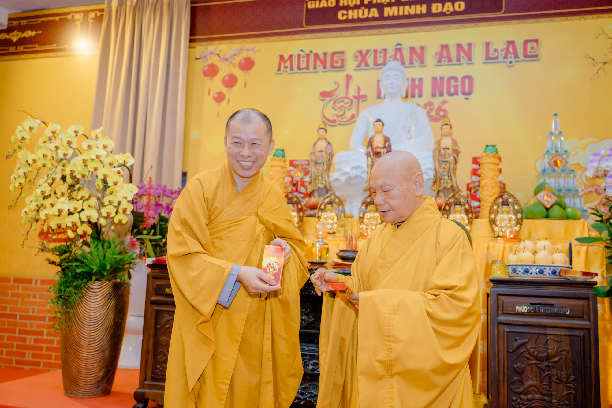 Cuối lời, Trưởng lão Hòa thượng Chủ tịch gửi lời chúc mừng năm mới đến toàn thể chư Tôn đức trong đoàn, cầu nguyện hồng ân Tam bảo gia hộ để mọi Phật sự đều thành tựu viên mãn, tinh thần đoàn kết hòa hợp ngày càng bền chặt, góp phần xây dựng và phát triển ngôi nhà chung Giáo hội Phật giáo Việt Nam ngày càng vững mạnh.