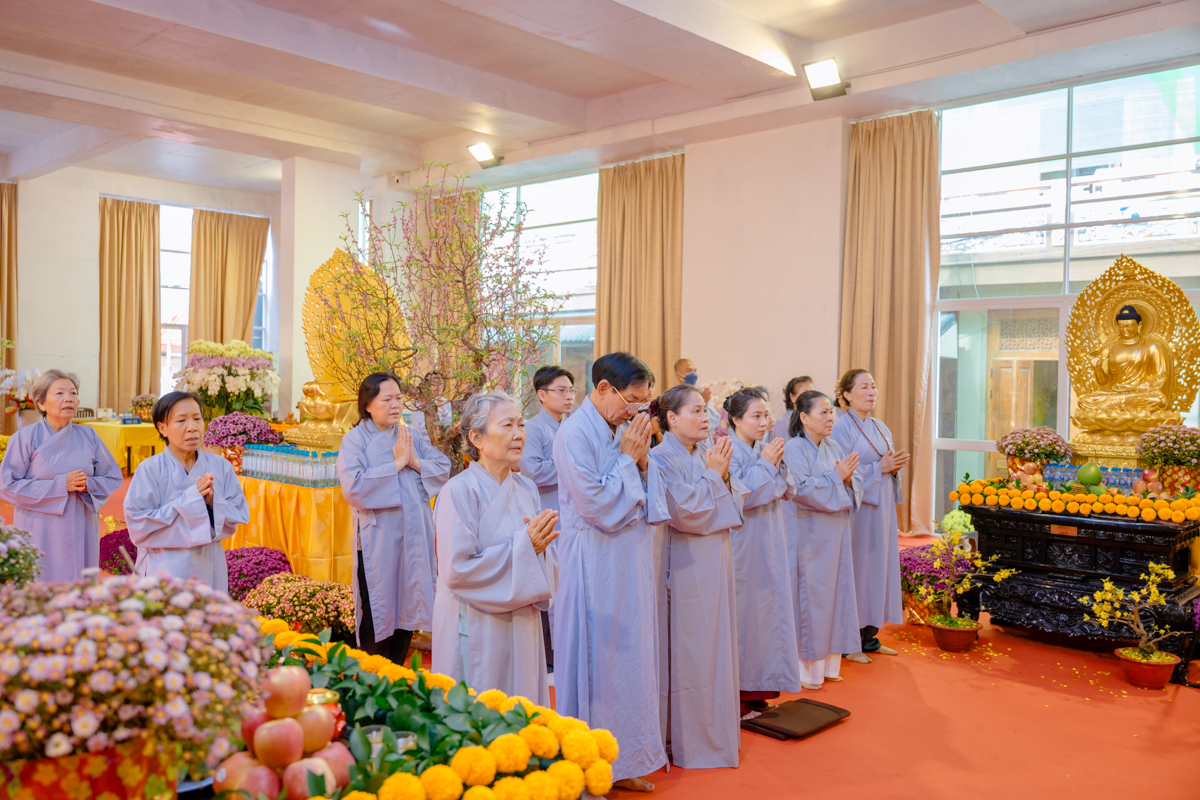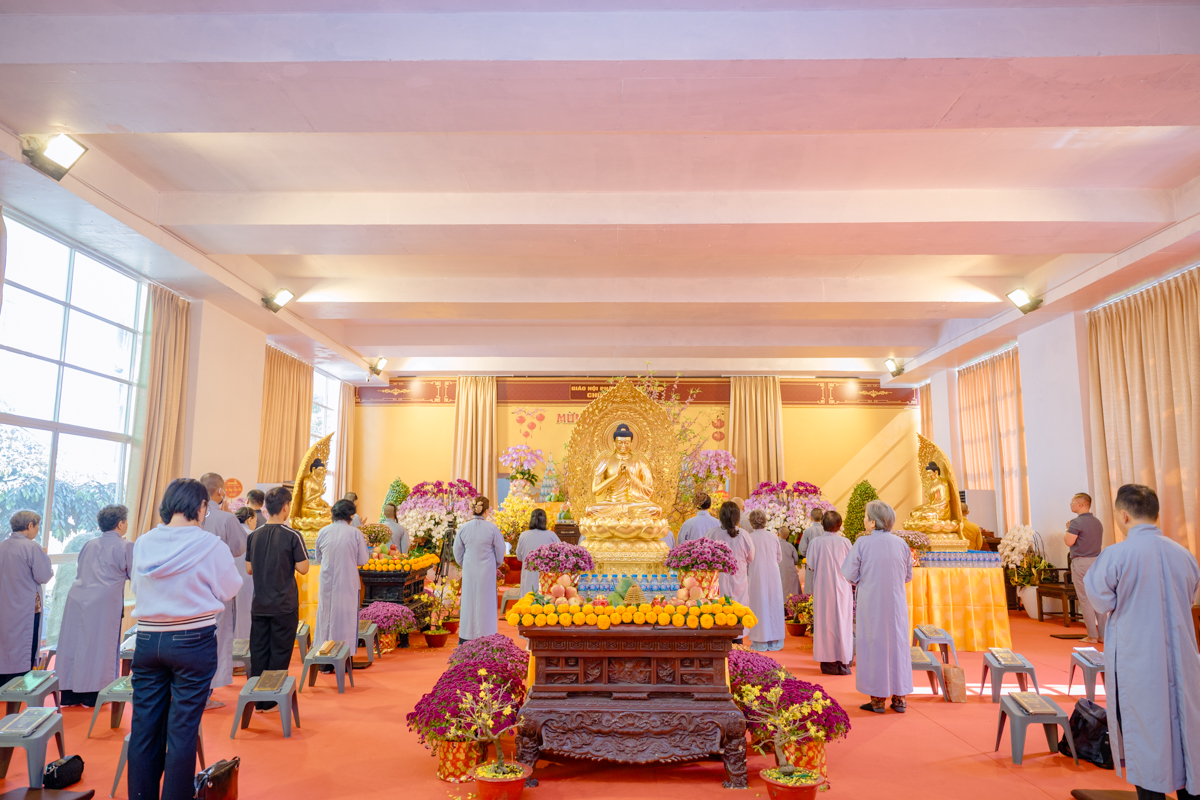 Tại hai đạo tràng, đại chúng đồng thanh trì tụng Kinh Dược Sư trong không khí trang nghiêm, chí thành. Trì tụng Kinh Dược Sư vào mỗi dịp đầu xuân năm mới là cơ hội để mỗi người gửi gắm ước nguyện vào sự bình an, phước lạc trong thời khắc khởi đầu của một năm; đồng thời phát khởi tâm lành, nguyện sống thiện hạnh, góp phần xây dựng gia đình an hòa, xã hội ổn định.