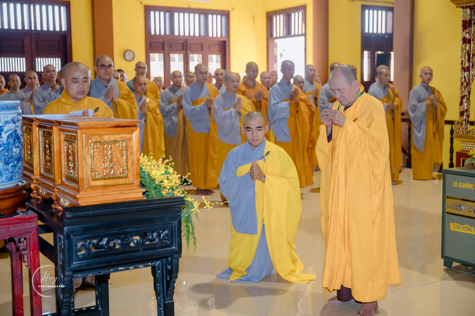 Nghi thức được cử hành tại Tổ đường – nơi tôn trí di ảnh Tổ Như Hiển – Chí Thiền, trong sự nhất tâm thành kính và thanh tịnh. Chư Tôn đức đã niêm hương bạch Phật, đảnh lễ chư Tổ, sau đó cung thỉnh Giới bổn lên kiệu, chúng giới tử Tỳ-kheo tại Giới trường Phi Lai hình thành đoàn cung rước trang nghiêm với đầy đủ hương, hoa, đăng, trà, quả, tiến về các giới trường Sa-di Tăng tại chùa Tây An và giới trường Ni tại chùa Phước Lâm.