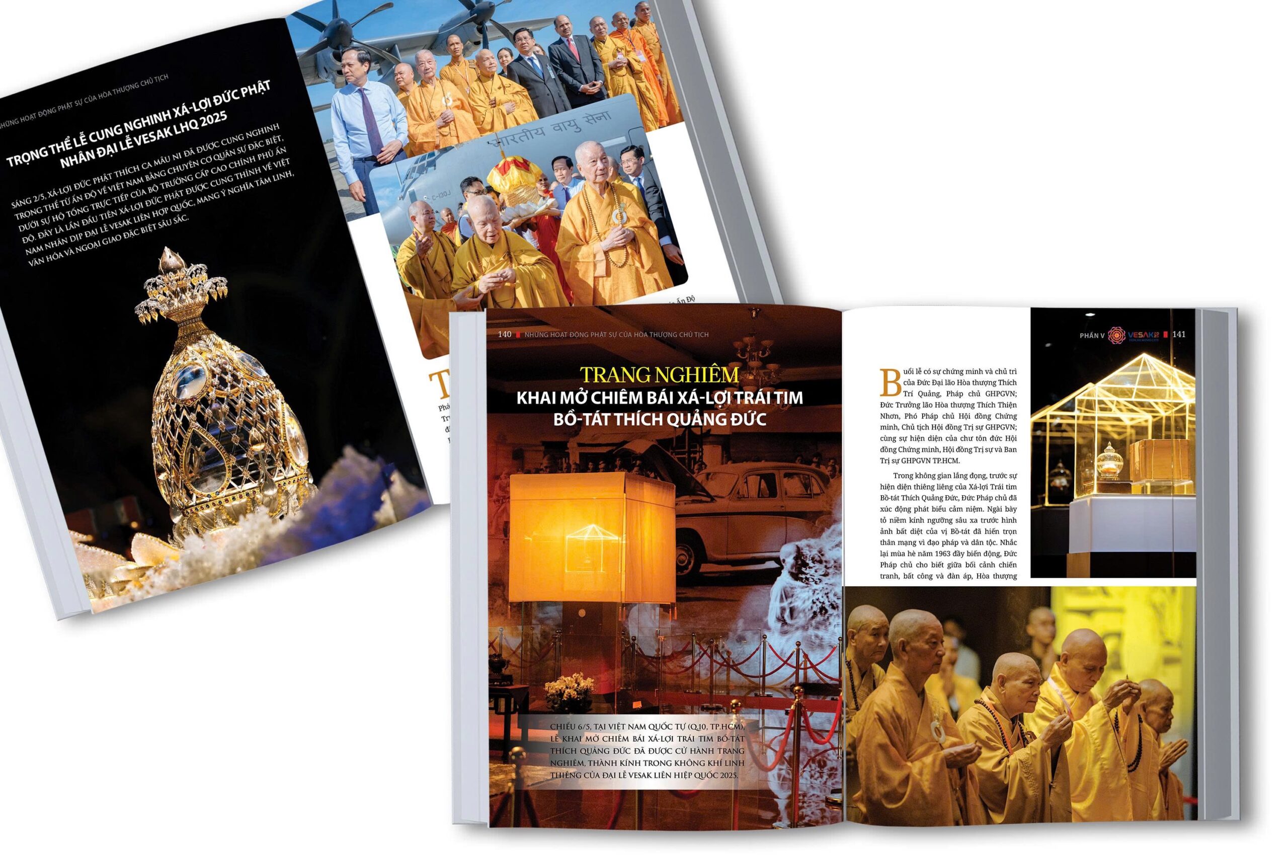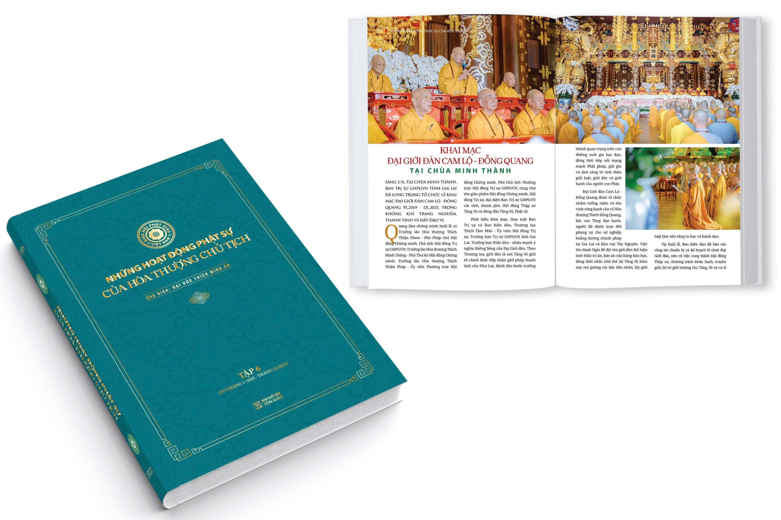 Tập sách “Những hoạt động Phật sự của Hòa thượng Chủ tịch 2025 – Tập 6” ghi lại những Phật sự tiêu biểu của Giáo hội trong năm 2025, nổi bật là Đại lễ Vesak Liên Hiệp Quốc 2025; lễ cung nghinh Xá-lợi Đức Phật; an vị Trái tim Bồ-tát Thích Quảng Đức; các Đại Giới đàn tại ba miền đất nước và các kỳ hội nghị, nghị sự quan trọng của Trung ương Giáo hội. Xen kẽ là những hình ảnh bình dị, thâm trầm của Trưởng lão Hòa thượng trong các pháp hội, khóa lễ và pháp thoại sách tấn đại chúng.