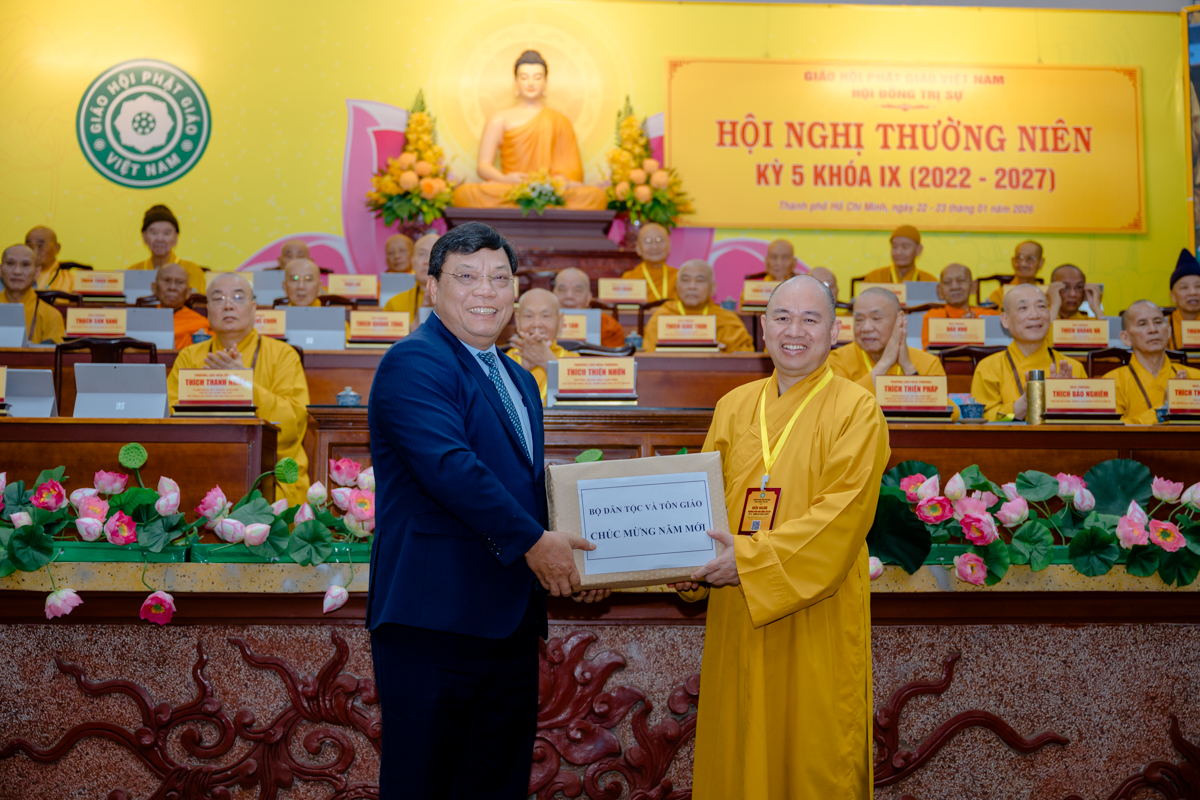 Phát biểu tại Hội nghị, Thứ trưởng Bộ Dân tộc và Tôn giáo Nguyễn Hải Trung chúc mừng những thành tựu Phật sự nổi bật của Giáo hội trong năm qua, đặc biệt là thành công của Đại lễ Vesak Liên Hợp Quốc 2025 – sự kiện được Chính phủ đánh giá rất cao và ghi nhận là một trong những thành tựu chung của đất nước.