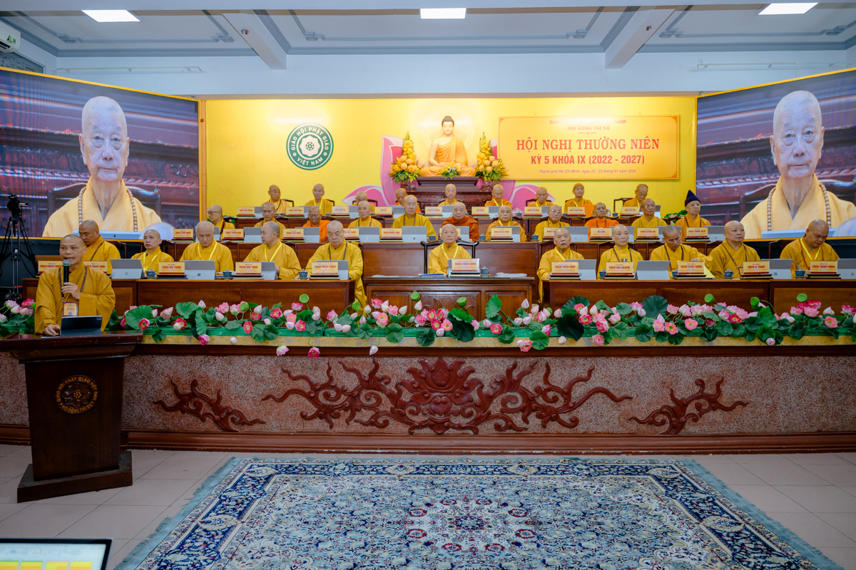 Trưởng lão Hòa thượng Chủ tịch cũng điểm lại những dấu mốc quan trọng trong năm 2025 – năm có ý nghĩa đặc biệt đối với đất nước và Giáo hội – với các sự kiện lớn như: Kỷ niệm 50 năm Ngày Giải phóng miền Nam, thống nhất đất nước; 80 năm Quốc khánh nước CHXHCN Việt Nam; đặc biệt là việc tổ chức thành công Đại lễ Vesak Liên Hợp Quốc 2025, được Chính phủ và cộng đồng quốc tế đánh giá cao, góp phần nâng cao vị thế và hình ảnh Việt Nam trên trường quốc tế.