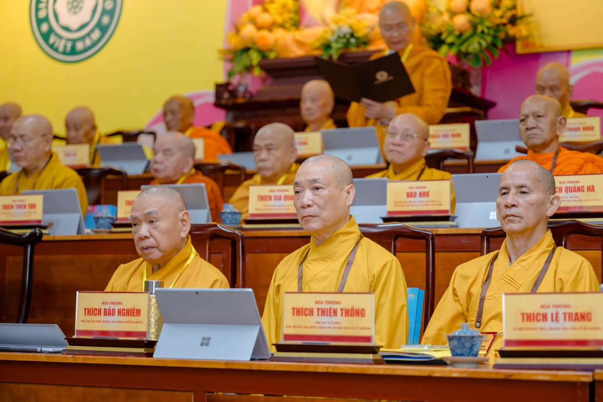 Đức Pháp chủ Đại lão Hòa thượng Thích Trí Quảng đã quang lâm chứng minh Hội nghị, cùng chư vị Trưởng lão Phó Pháp chủ, Ủy viên Thường trực và thành viên HĐCM.