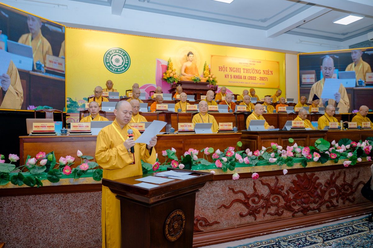 Tại phiên khai mạc, Hội nghị cũng đã nghe Thượng tọa Thích Đức Thiện – Phó Chủ tịch kiêm Tổng Thư ký HĐTS trình bày Báo cáo tổng kết công tác Phật sự năm 2025; Hòa thượng Thích Huệ Thông – Phó Chủ tịch HĐTS thông qua Chương trình hoạt động Phật sự năm 2026.