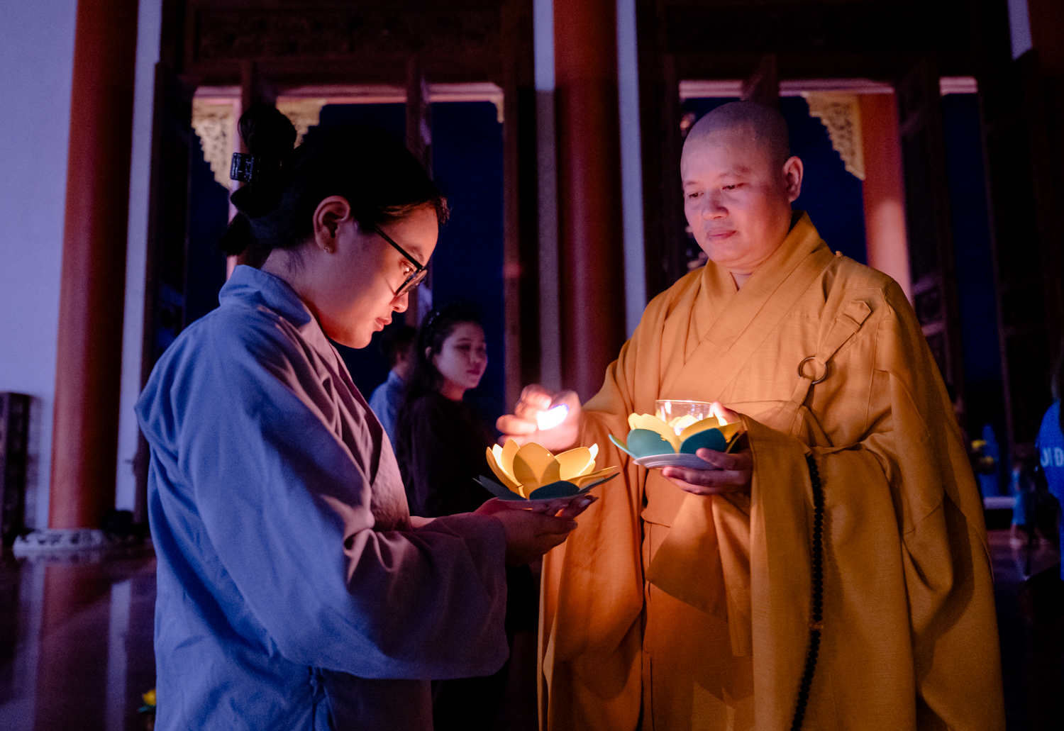 Trong không gian linh thiêng nơi chánh điện, ánh sáng của hàng trăm ngọn nến hòa quyện cùng niềm tin và tâm thành của người con Phật, làm rạng tỏa thông điệp từ bi, trị liệu và cứu độ của Đức Phật Dược Sư đến mọi nẻo nhân sinh.