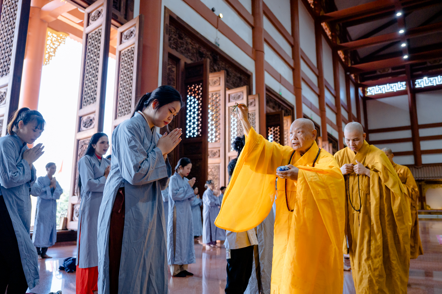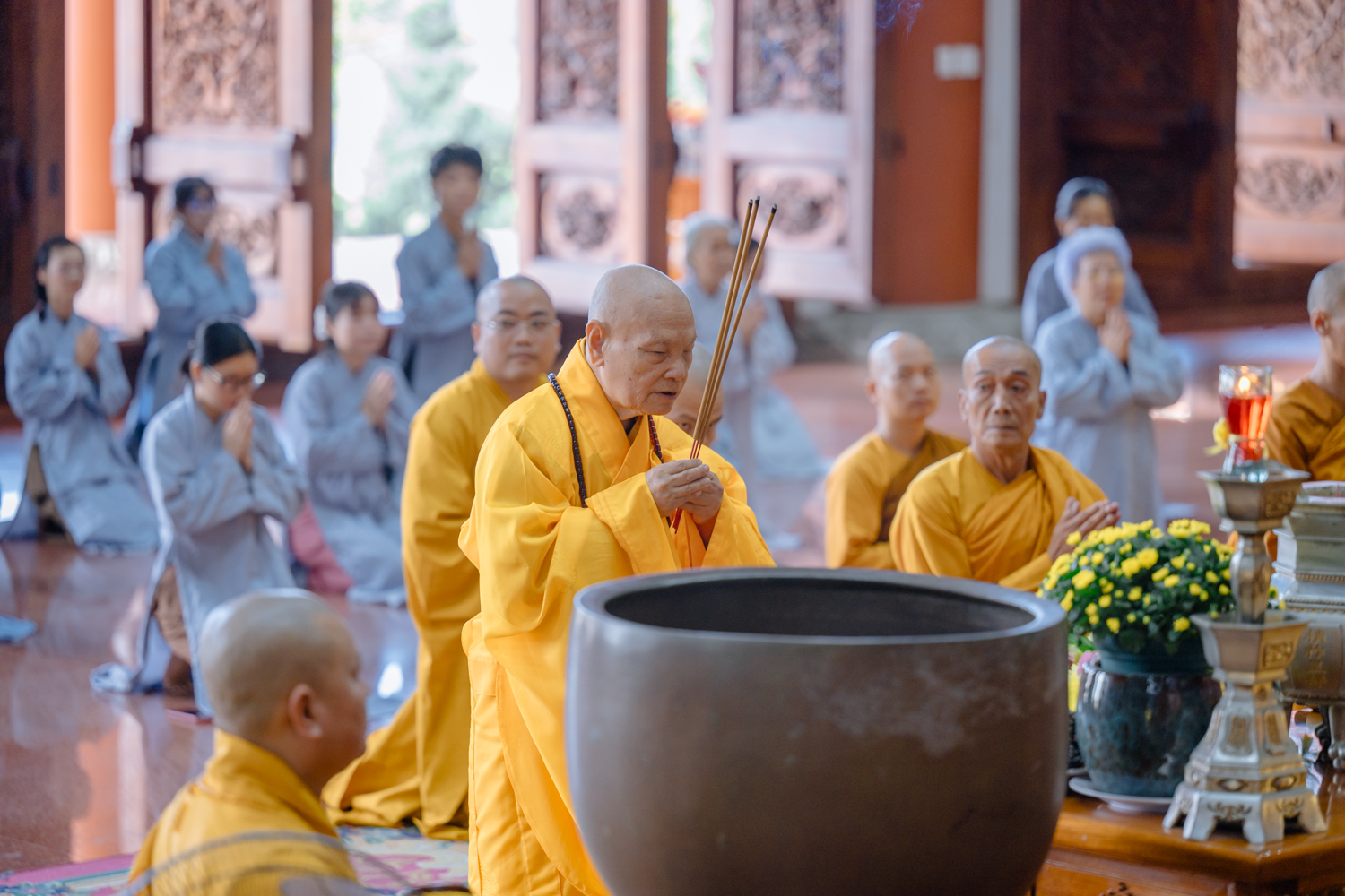 Trưởng lão Hòa thượng Viện chủ đã quang lâm chủ trì buổi lễ, hướng dẫn giới tử quay về nương tựa Phật – Pháp – Tăng. Hòa thượng cùng chư tôn đức giới sư thực hiện các nghi thức truyền giới, giới tử thành kính hướng về Tam Bảo cầu giới pháp.