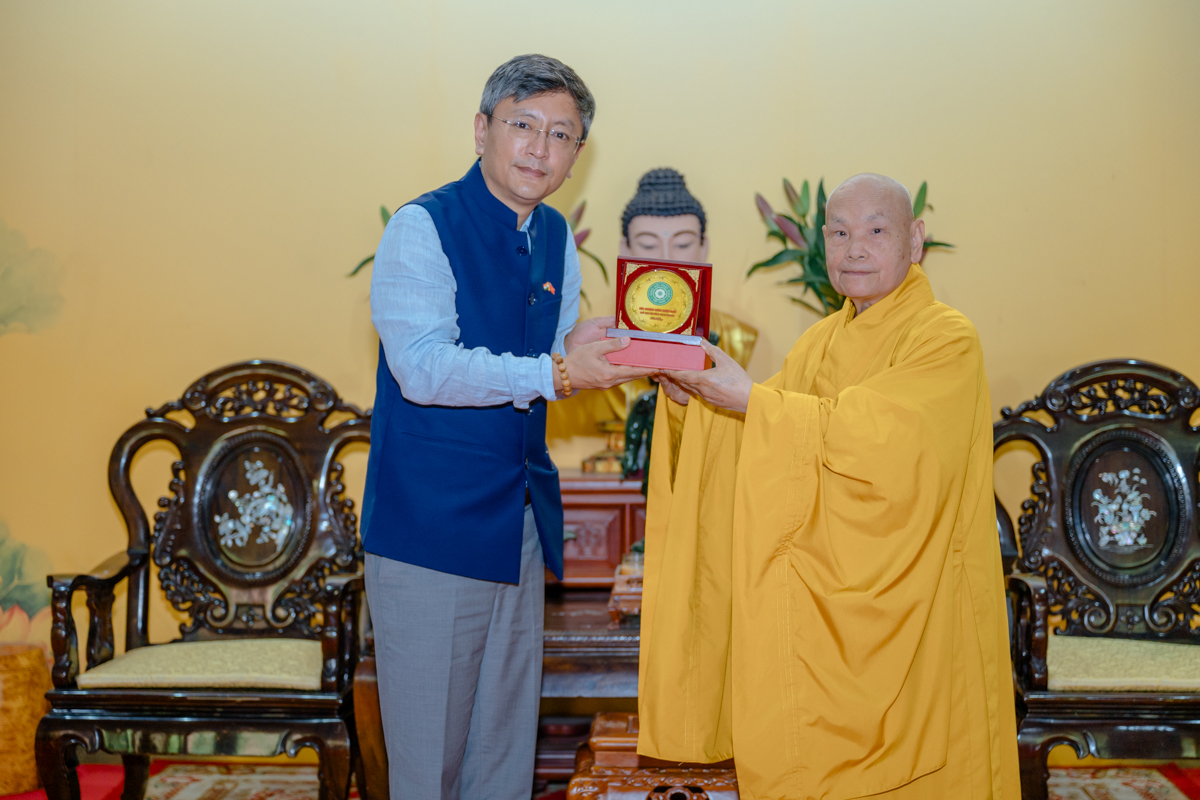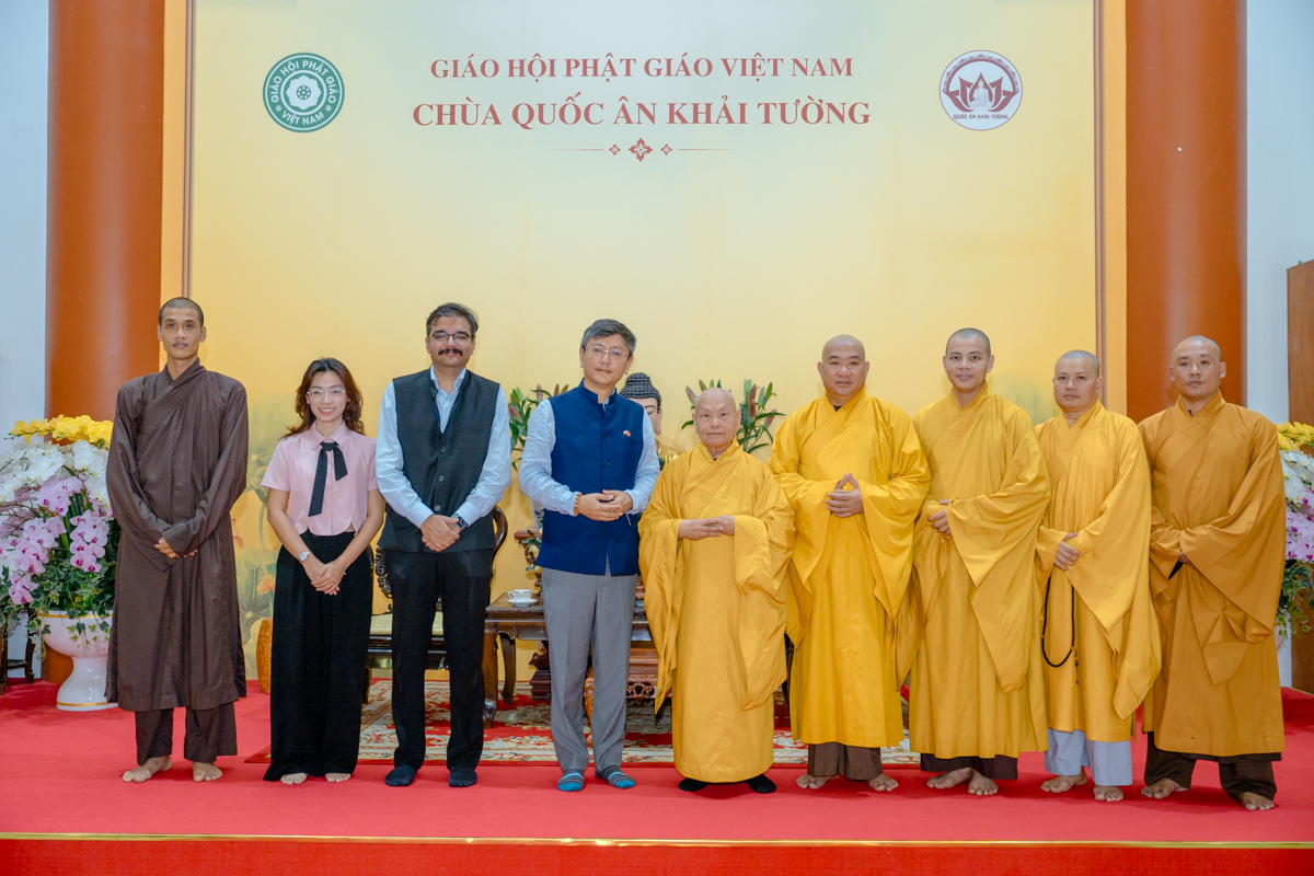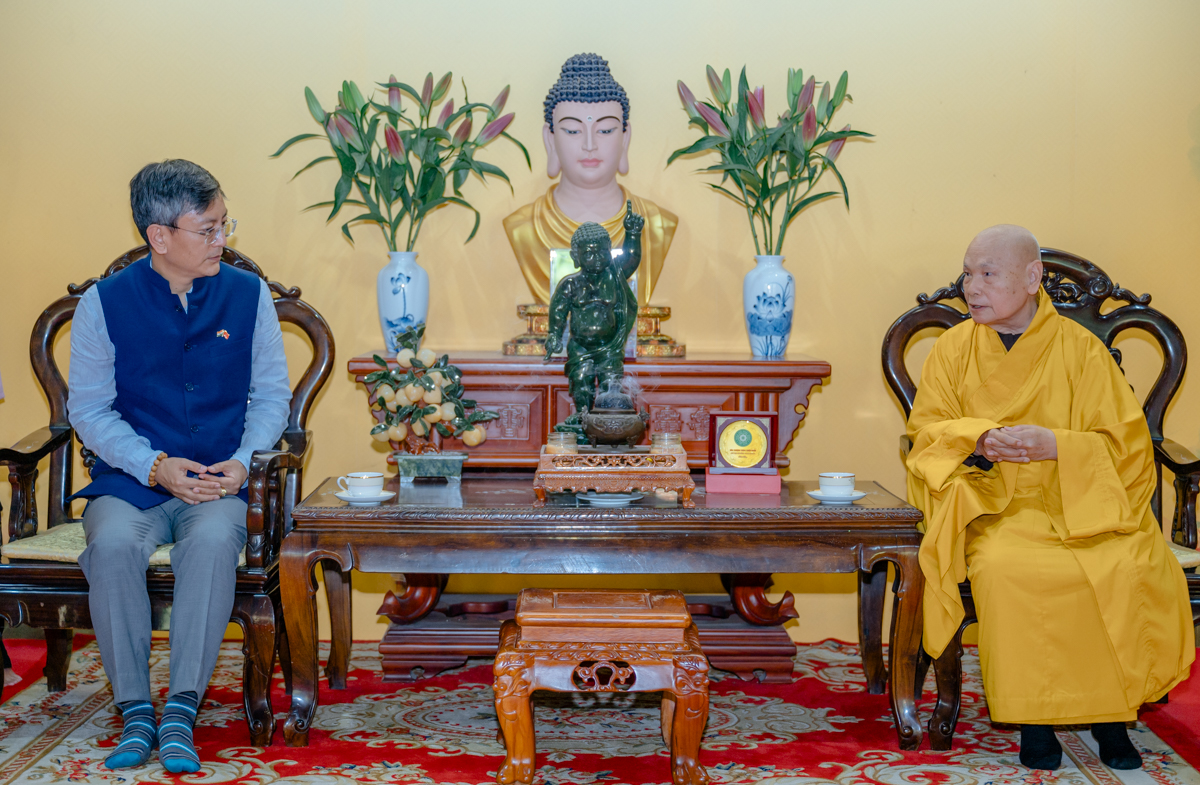 Trong buổi tiếp thân mật tại Phòng khách, Trưởng lão Hòa thượng Chủ tịch bày tỏ niềm hoan hỷ khi đón tiếp tân Đại sứ Ấn Độ, nhấn mạnh mối quan hệ hữu nghị truyền thống giữa Việt Nam và Ấn Độ – quê hương của Đức Phật; đồng thời khẳng định Phật giáo là nhịp cầu văn hóa góp phần tăng cường ngoại giao nhân dân, thúc đẩy hợp tác trên các lĩnh vực giáo dục, văn hóa và tâm linh.