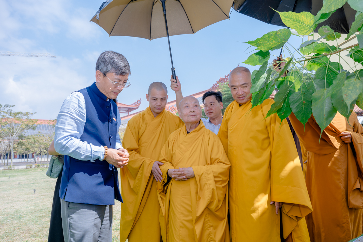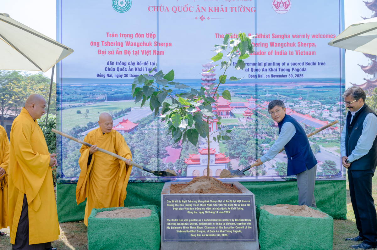 Trưa 30/11, tại chùa Quốc Ân Khải Tường, tỉnh Đồng Nai, Trưởng lão Hòa thượng Thích Thiện Nhơn – Phó Pháp chủ HĐCM, Chủ tịch Hội đồng Trị sự GHPGVN đã thân mật tiếp ngài Tshering W. Sherpa – Tân Đại sứ Đặc mệnh Toàn quyền Cộng hòa Ấn Độ tại Việt Nam đến thăm và trồng cây lưu niệm.