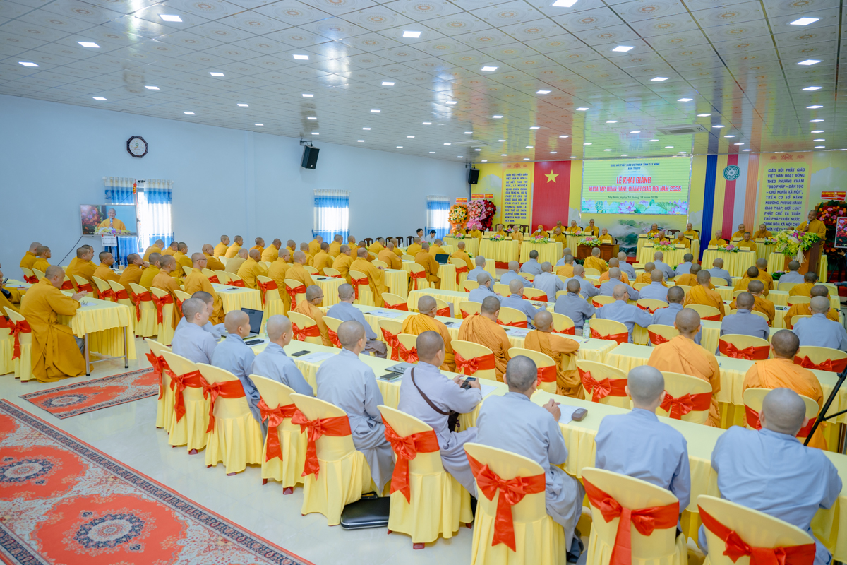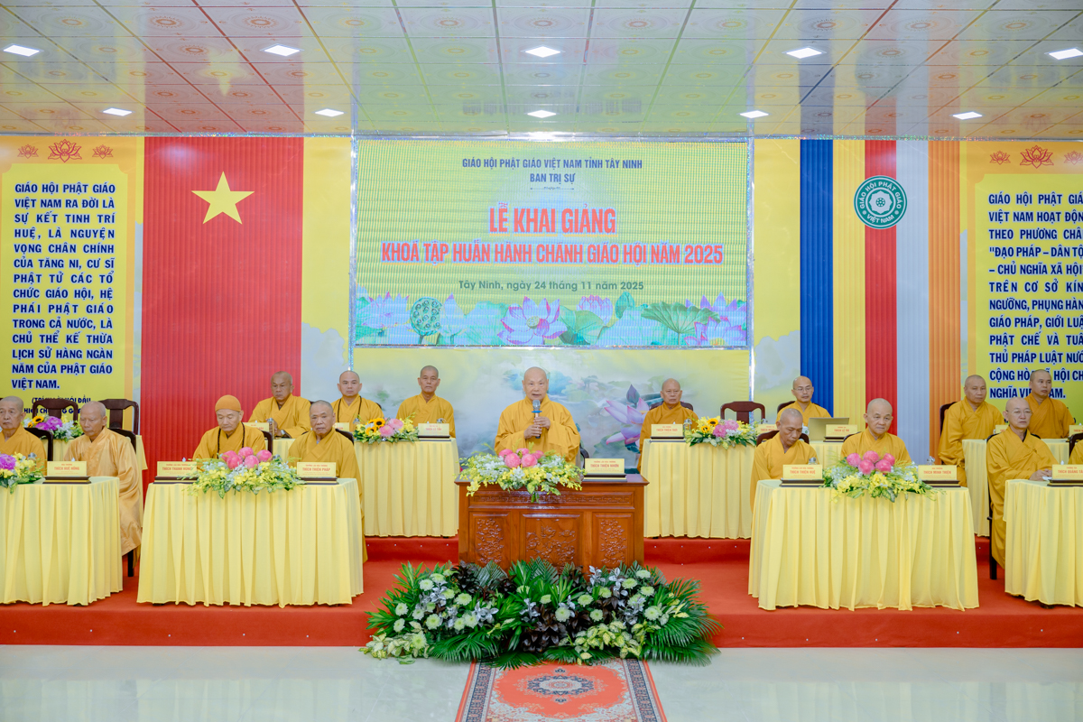 Sáng 24/11, tại chùa Pháp Minh – Văn phòng Ban Trị sự GHPGVN tỉnh Tây Ninh, Ban Trị sự tỉnh đã khai mạc Khóa tập huấn hành chánh Giáo hội năm 2025. Khóa học kéo dài trong 3 ngày, dành cho thành viên Ban Trị sự vừa kiện toàn sau sáp nhập và chư Tăng Ni trụ trì các tự viện, với mục tiêu nâng cao kiến thức hành chánh, kỹ năng quản trị và điều hành Phật sự trong bối cảnh hội nhập và chuyển đổi số.