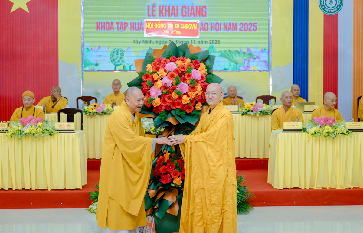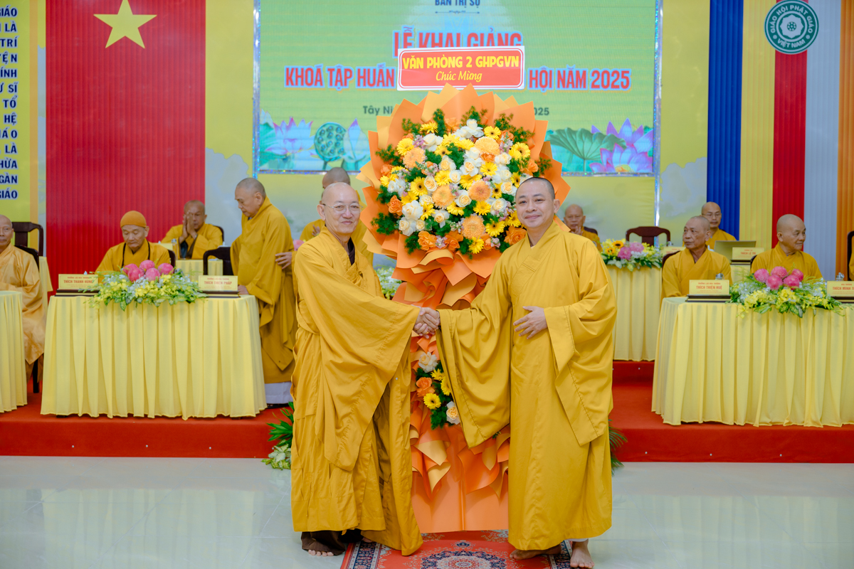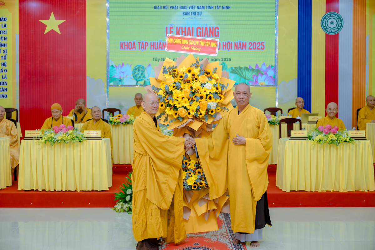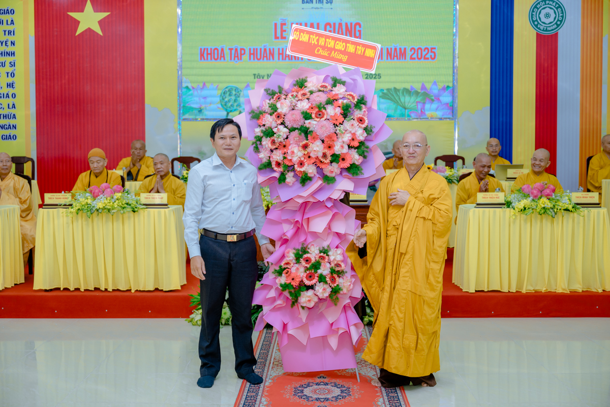 Dịp này, đại diện lãnh đạo Sở Dân tộc và Tôn giáo tỉnh Tây Ninh phát biểu ghi nhận và đánh giá cao sự phối hợp chặt chẽ của Giáo hội trong công tác tổ chức khóa tập huấn; đồng thời bày tỏ kỳ vọng khóa học sẽ góp phần nâng cao hiệu quả quản lý, điều hành Phật sự, đáp ứng yêu cầu đổi mới trong thời đại hội nhập, số hóa và tinh gọn bộ máy.