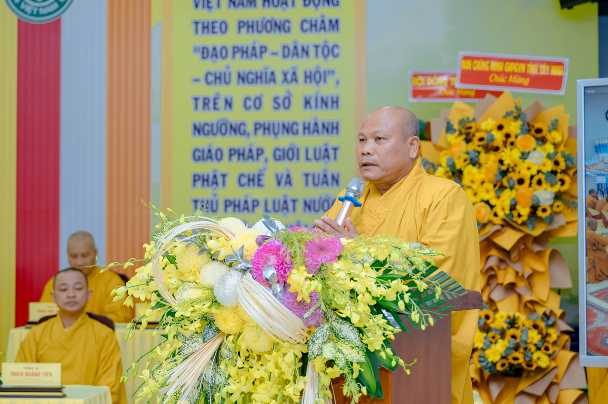 Phát biểu khai mạc, Thượng tọa Thích Quảng Tâm – Ủy viên HĐTS, Trưởng ban Trị sự tỉnh Tây Ninh – nhấn mạnh ý nghĩa của khóa học trong việc chuẩn hóa quản trị hành chánh Giáo hội, giúp Tăng Ni tiếp cận phương pháp điều hành tự viện và Phật sự tỉnh nhà một cách khoa học, hiện đại, phù hợp với Hiến chương GHPGVN và pháp luật Nhà nước.