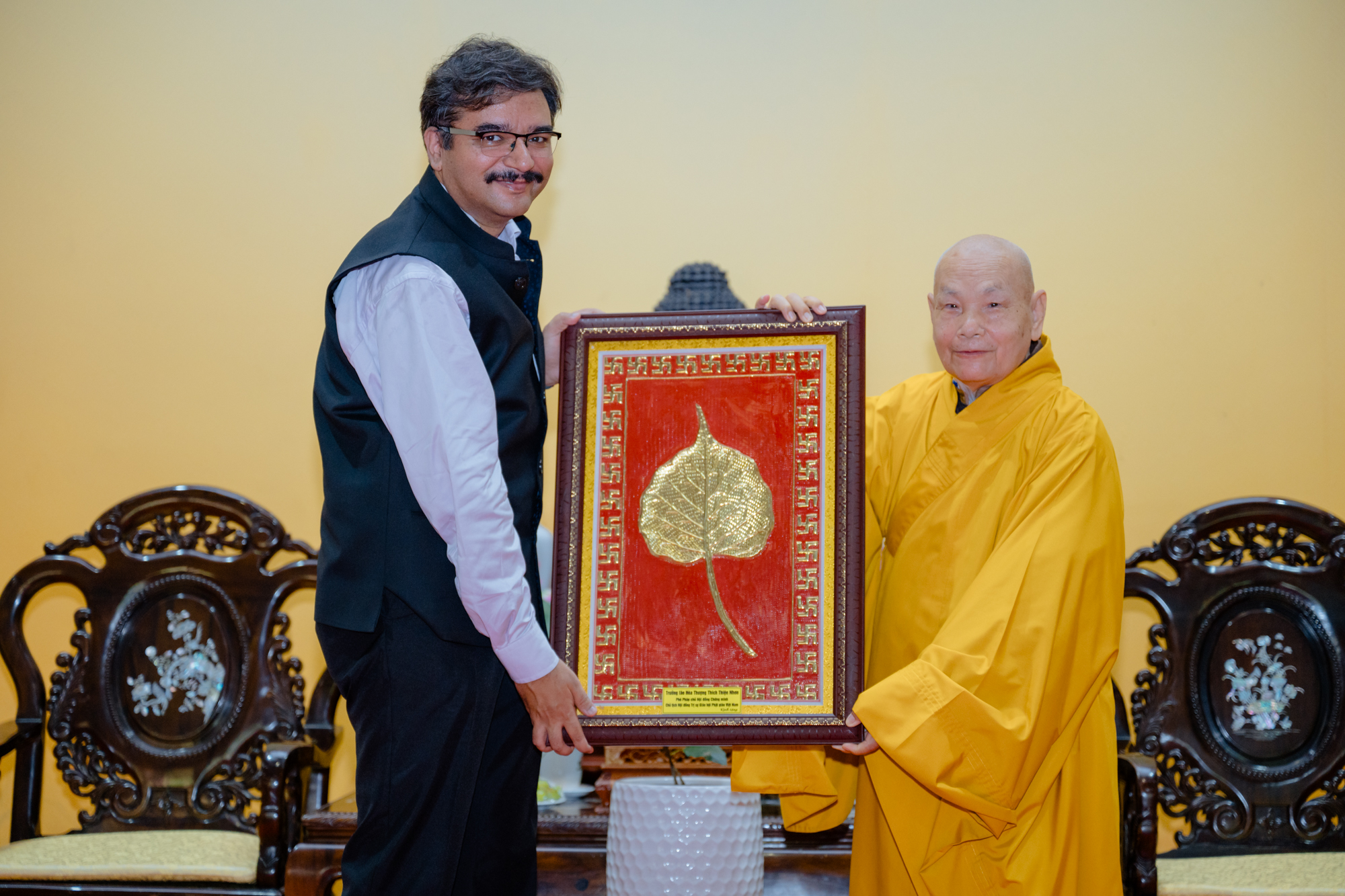 Trong không khí thân mật, Trưởng lão Hòa thượng Thích Thiện Nhơn – Phó Pháp chủ Hội đồng Chứng minh, Chủ tịch Hội đồng Trị sự GHPGVN đã tiếp ngài Vipra Pandey – Tổng Lãnh sự Ấn Độ tại TP.HCM. Hòa thượng bày tỏ niềm vinh dự khi sự kiện ý nghĩa được tổ chức tại bổn tự, đồng thời gửi lời tri ân sâu sắc đến Chính phủ Ấn Độ đã hỗ trợ GHPGVN trong việc thỉnh Xá-lợi Đức Phật Thích Ca Mâu Ni về Việt Nam trong Đại lễ Vesak vừa qua.