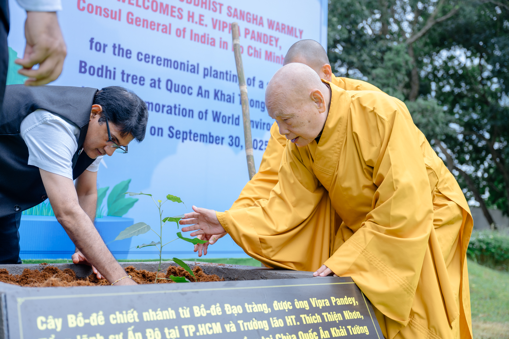 Hoạt động trồng cây không chỉ lan tỏa tinh thần bảo vệ môi trường, mà còn tôn vinh thông điệp từ bi, hòa bình của đạo Phật, khẳng định tình hữu nghị Việt Nam – Ấn Độ và cam kết đồng hành vì một hành tinh xanh, bền vững.