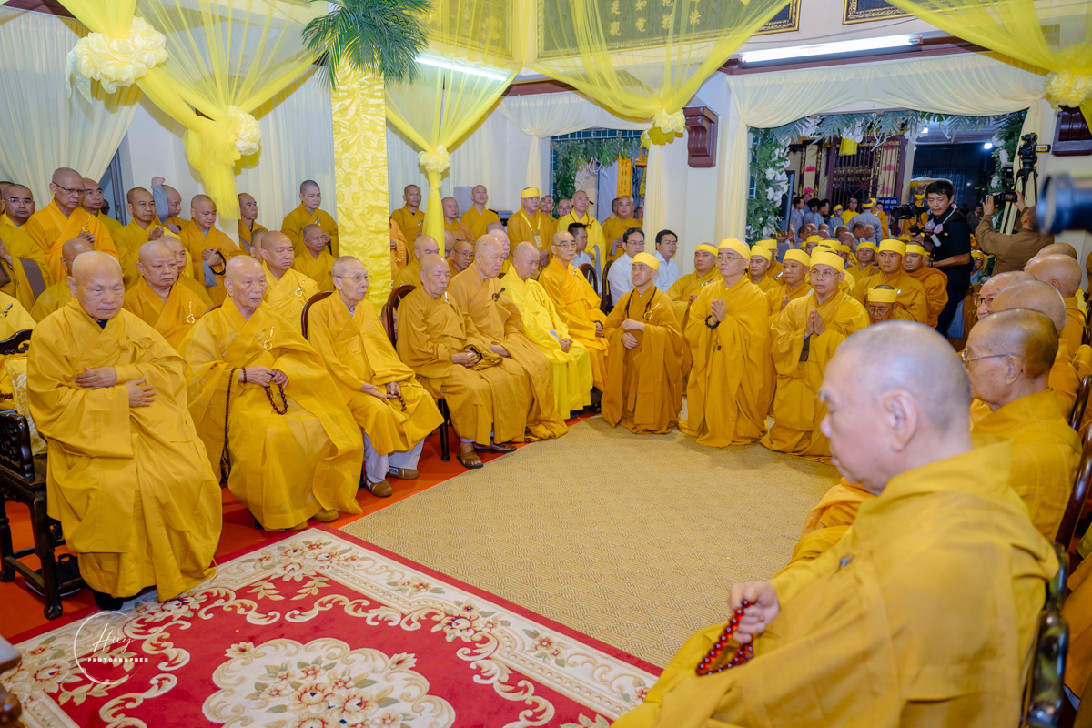 Quang lâm chứng minh và tham dự buổi lễ có Trưởng lão Hòa thượng Thích Thiện Nhơn – Phó Pháp chủ Hội đồng Chứng minh, Chủ tịch Hội đồng Trị sự;Trưởng lão Hòa thượng Thích Thiện Pháp – Ủy viên Thường trực Hội đồng Chứng minh, Phó Chủ tịch Thường trực Hội đồng Trị sự; cùng chư tôn giáo phẩm Hội đồng Chứng minh, Hội đồng Trị sự, chư tôn đức Văn phòng 2 Trung ương, Ban Trị sự Phật giáo TP.HCM; đông đảo Tăng Ni, môn đồ pháp quyến và Phật tử gần xa đồng về tham dự, kính tiễn bậc cao Tăng thạc đức về cõi Phật.