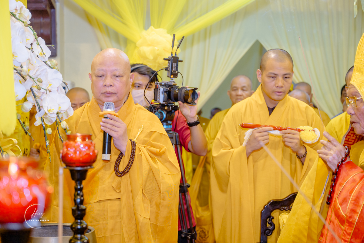 Trước giờ phụng tống kim quan, Trưởng lão Hòa thượng Thích Huệ Minh – Ủy viên Thường trực Hội đồng Chứng minh đã cử hành nghi thức tuyên pháp ngữ và phất trần theo nghi lễ thiền môn, tiễn biệt bậc trưởng lão tòng lâm viên mãn đạo nghiệp, thuận thế vô thường trở về cảnh giới tịnh lạc.