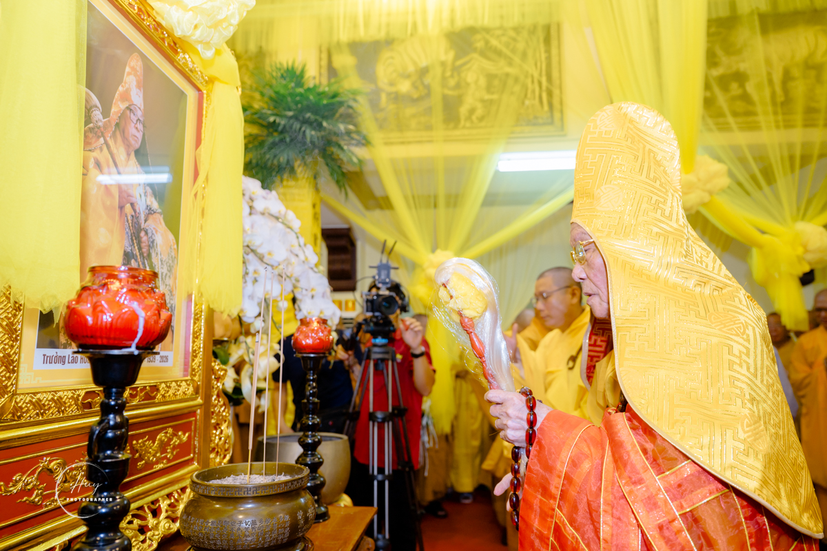 Sau các nghi thức tưởng niệm, Hòa thượng Thích Lệ Trang – Phó Chủ tịch Hội đồng Trị sự, Trưởng ban Nghi lễ Trung ương xướng lễ cầu nguyện và truy tán công hạnh. Chư tôn Trưởng lão Hòa thượng cùng toàn thể Tăng Ni, Phật tử trang nghiêm dâng hương tưởng niệm và bái biệt Giác linh cố Trưởng lão Hòa thượng Thích Như Tín.