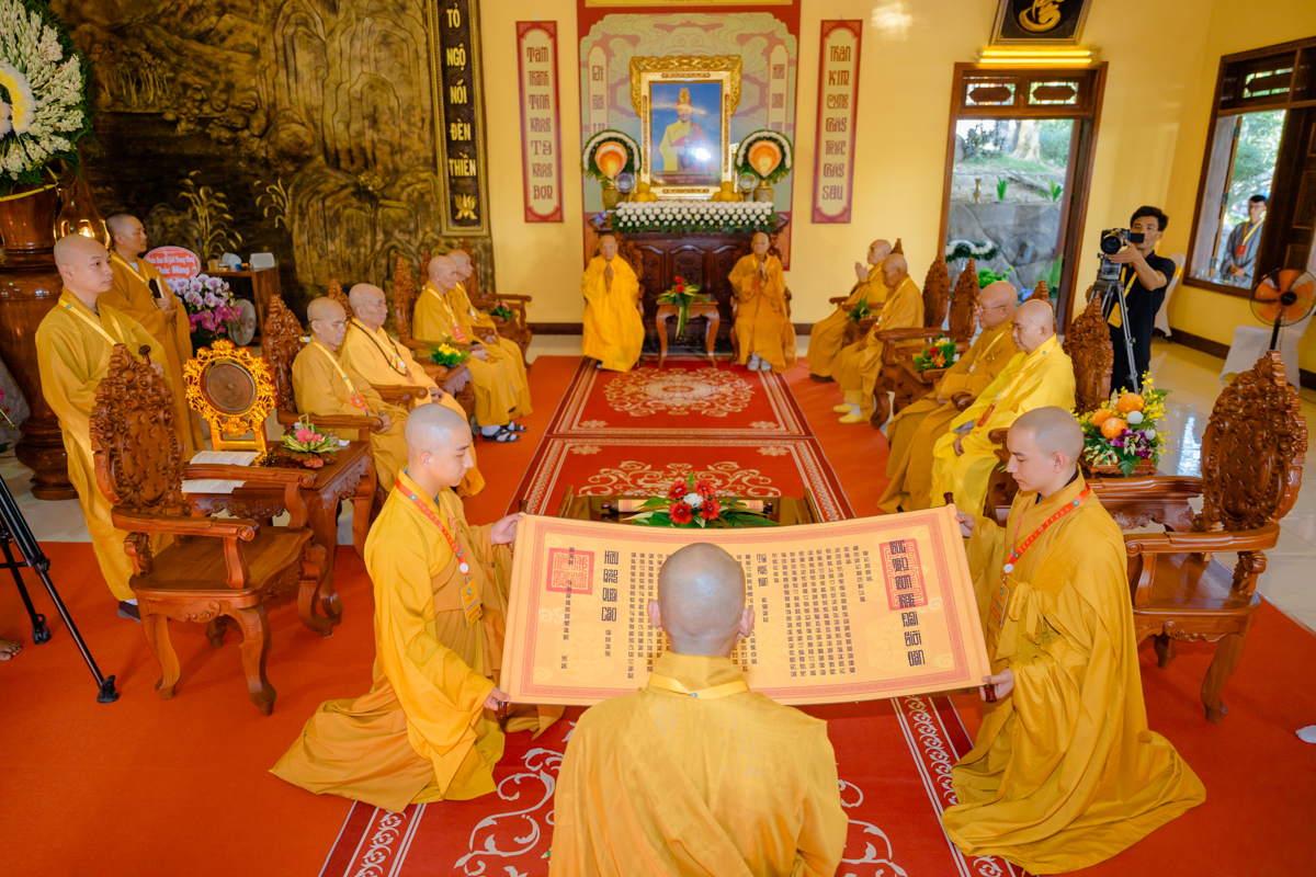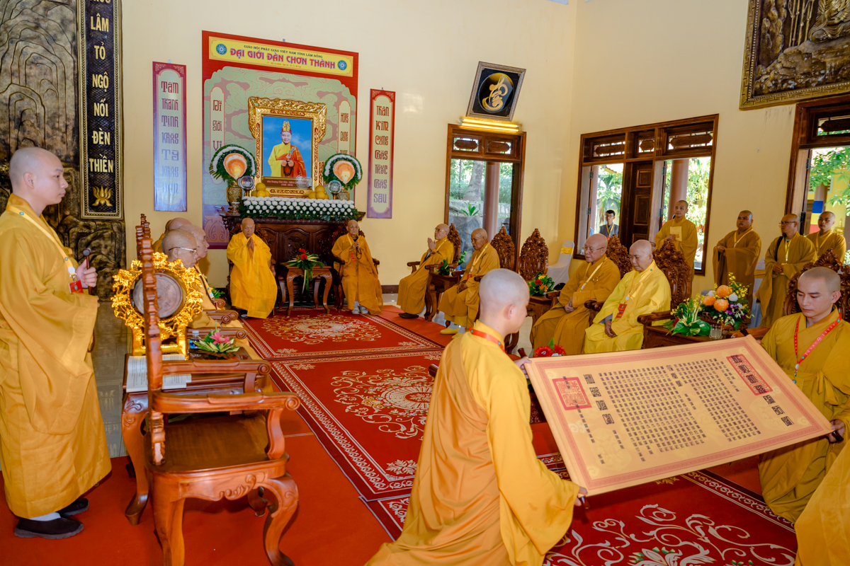 Theo sự cung thỉnh, Trưởng lão Hòa thượng Thích Thiện Nhơn đương vi Đường đầu Hòa thượng; Hòa thượng Thích Minh Thông đảm nhiệm Yết-ma A-xà-lê; Hòa thượng Thích Quang Nhuận đảm nhiệm Giáo thọ A-xà-lê. Chư vị Tôn chứng Tăng-già gồm các Hòa thượng: Thích Đồng Tiến, Thích Hải Mẫn, Thích Thanh Tùng, Thích Thanh Tân, Thích Đức An, Thích Hoằng Tri và Thích Hạnh Thể.