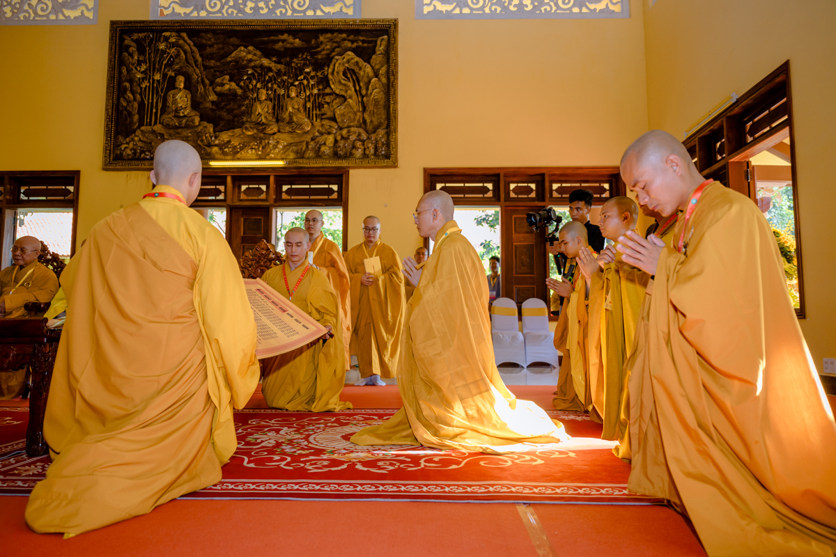 Tại Cầu giới đường, Ban Kiến đàn đã tác bạch cung an chức sự Hội đồng Thập sư đàn Tỳ-kheo Theo đó, chư vị giới sư từ bi niệm Phật hứa khả, khởi thân dâng hương đảnh lễ lịch đại Tổ sư và quang lâm Giới trường để chính thức đăng đàn truyền trao giới pháp cho các giới tử.