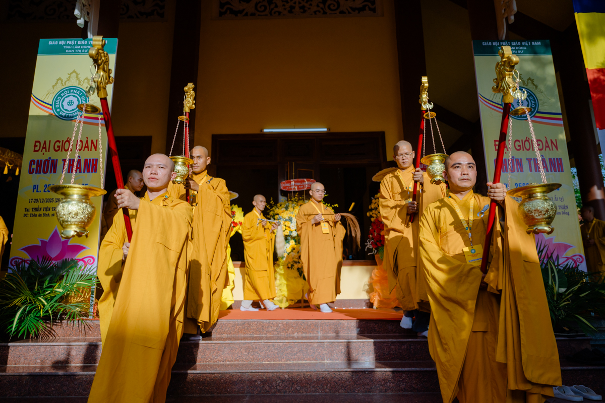 Chiều 18 và sáng 19-12, tại giới trường Thiền viện Trúc Lâm Chánh Thiện (tỉnh Lâm Đồng), Hội đồng Thập sư đã trang nghiêm cử hành nghi thức đăng đàn truyền giới Cụ túc cho 280 giới tử Tỳ-kheo trong khuôn khổ Đại Giới đàn Chơn Thành Phật lịch 2569.
