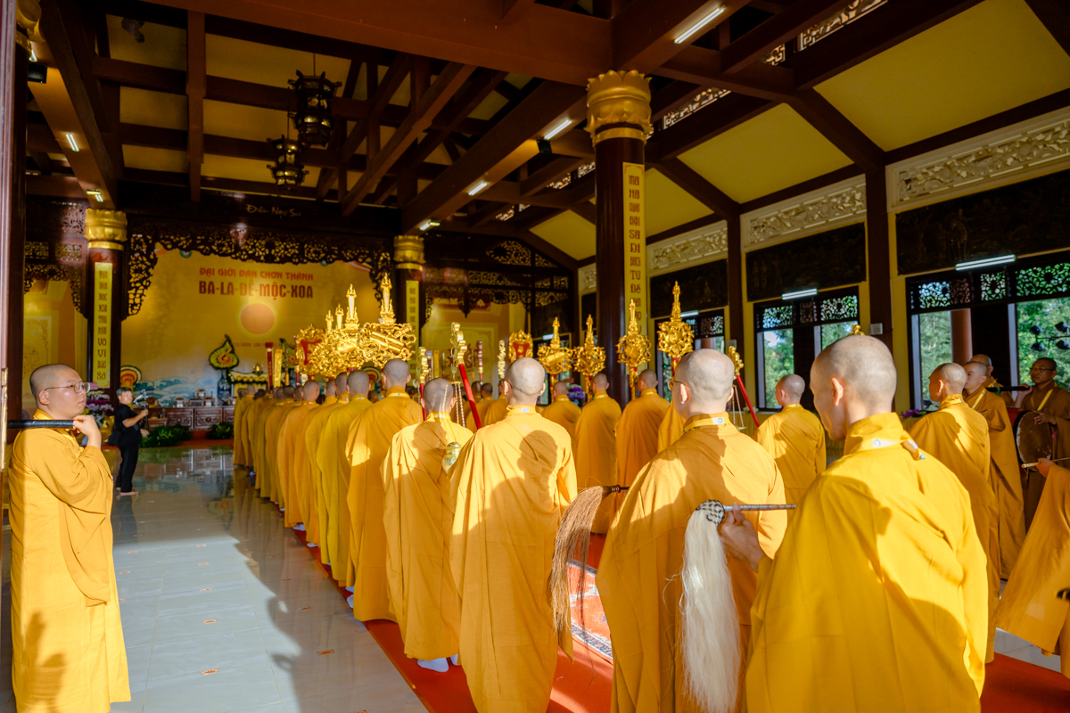 Đàn giới Tỳ-kheo được tiến hành theo từng chúng ba giới tử, chia thành 93 đàn. Trong tiến trình thọ giới, giới tử được hướng dẫn xả mạn y và được truyền trao tam y, bình bát, tọa cụ, đãy lọc nước – những pháp khí thiết yếu của đời sống Tỳ-kheo.