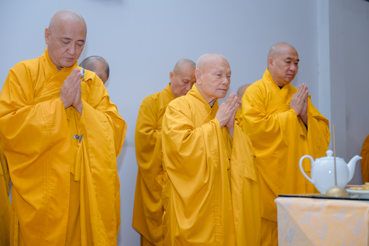 Trưởng lão Hòa thượng Chủ tịch đã thỉnh trà và dâng phạm thực cúng dường Giác linh Đức Đệ nhất Pháp chủ, toàn thể Tăng Ni đồng tụng thời Bát-nhã Tâm kinh cúng dường, chí thành cầu nguyện Giác linh Ngài từ bi chứng minh, gia hộ cho Phật giáo Việt Nam trường tồn cùng dân tộc, Giáo hội được ổn định, hòa hợp và phát triển bền vững.
