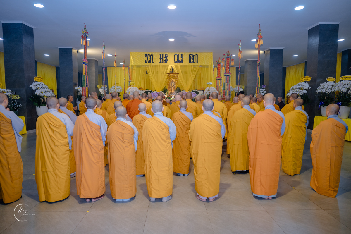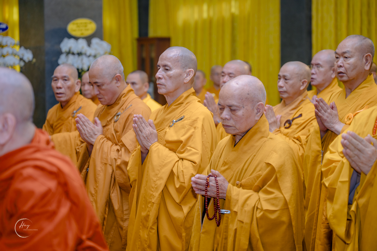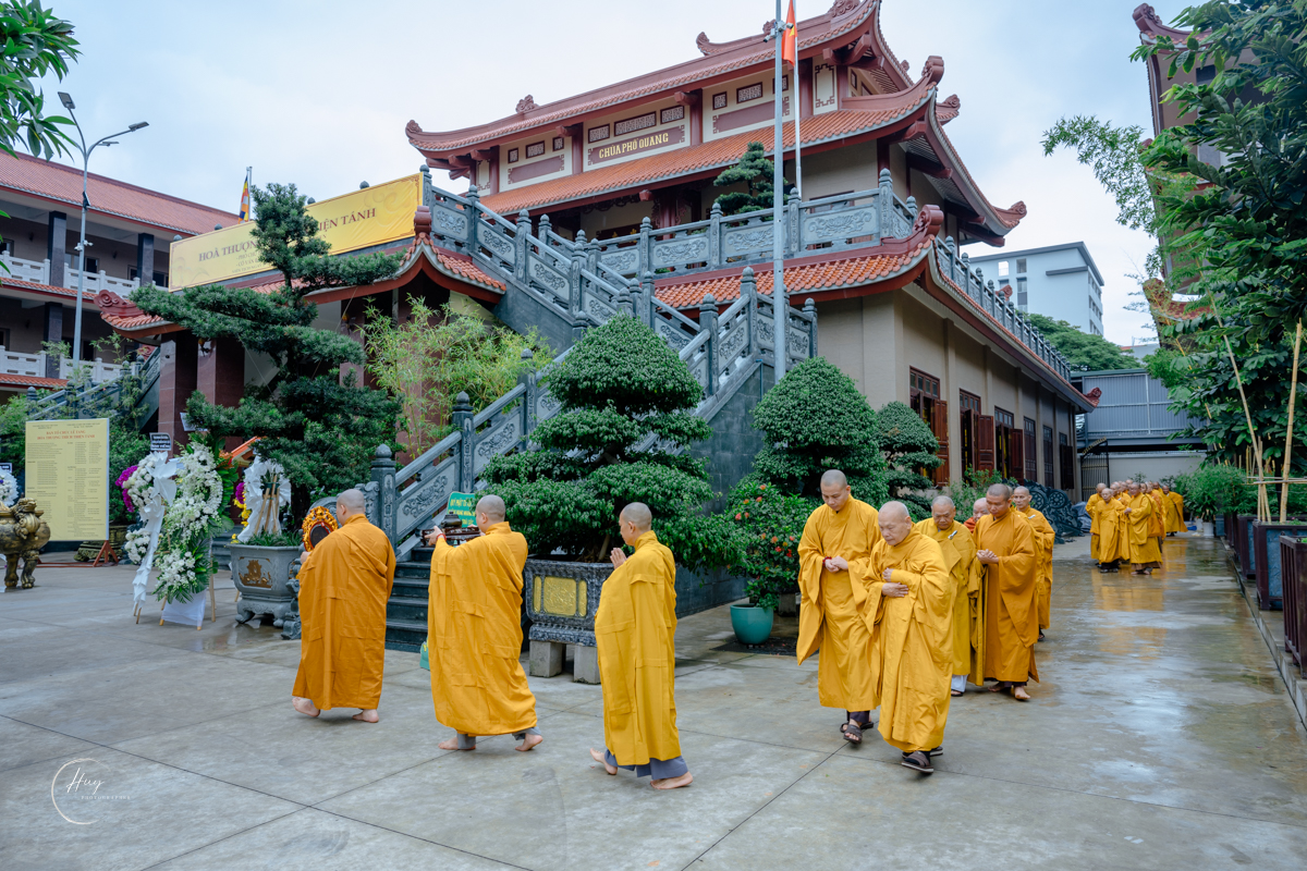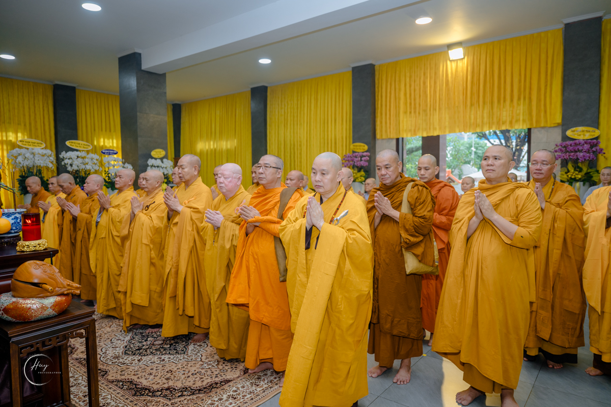 Trong giây phút trang nghiêm và vô vàn kính tiếc, chư Tôn đức lần lượt hữu nhiễu kim quan, tiễn biệt vị pháp hữu đồng hành, người đã cùng chư vị trưởng lão xây dựng và phát triển Giáo hội từ những ngày đầu thành lập cho đến hôm nay.