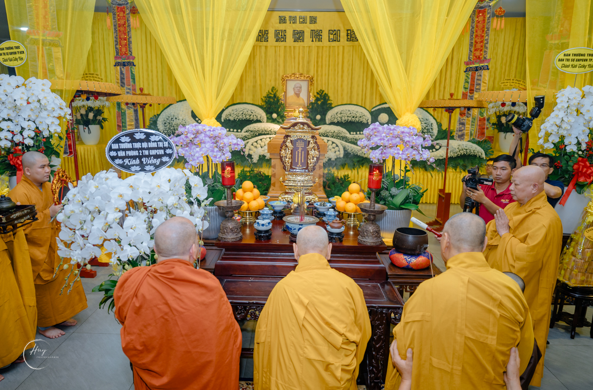 Tại Giác linh đường, Trưởng lão Hòa thượng Chủ tịch  cùng chư Tôn đức thành kính dâng hương tưởng niệm Giác linh Trưởng lão Hòa thượng, nguyện cầu Ngài cao đăng Phật quốc, hồi nhập Ta-bà hóa độ chúng sinh. Đại chúng đồng niệm Phật hồi hướng công đức, tưởng niệm sâu sắc bậc Trưởng lão đã suốt đời phụng sự Giáo hội.