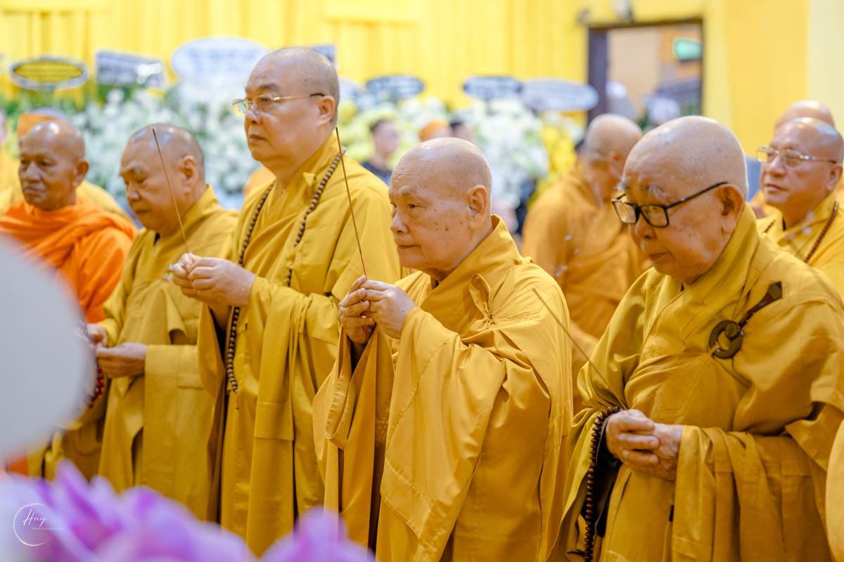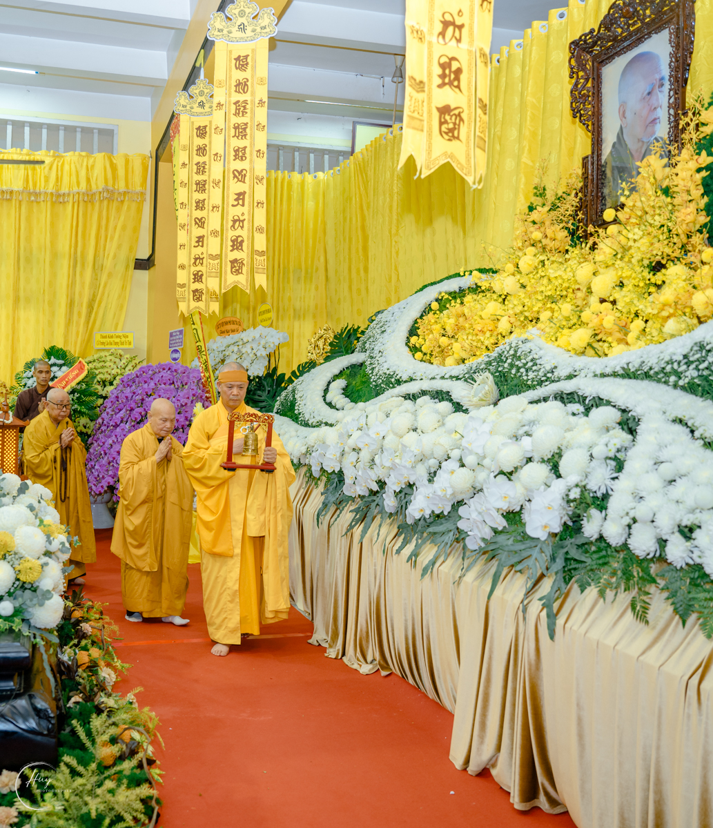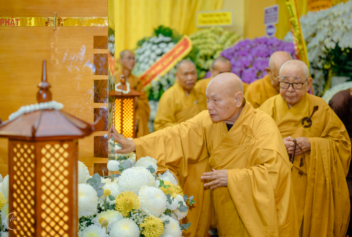 Chư tôn giáo phẩm lãnh đạo Giáo hội theo đó cùng hữu nhiễu kim quan, lần lượt tiễn biệt vị pháp lữ khả kính, bậc mô phạm giới đức thanh cao trong lòng Tăng Ni, Phật tử.