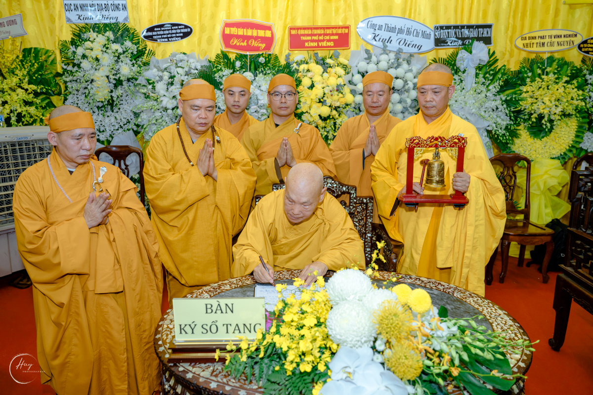Cuối lễ viếng, Trưởng lão Hòa thượng Chủ tịch thay mặt Trung ương Giáo hội ký sổ tang, lưu lại đôi dòng tưởng niệm chí thành, cũng như phân ưu đến sơn môn pháp phái và môn đồ pháp quyến, trước sự viên tịch của bậc Tôn trưởng tông môn.