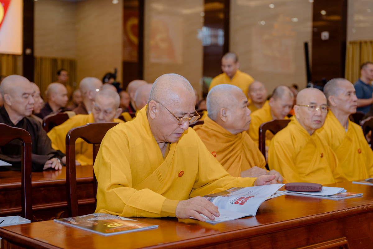 Chứng minh và tham dự còn chư vị Trưởng lão Phó Pháp chủ Hòa thượng Thích Giác Quang, Hòa thượng Thích Viên Minh; nhị vị Trưởng lão Ủy viên Thường trực HĐCM, Phó Chủ tịch Thường trực HĐTS Hòa thượng Thích Thiện Pháp và Hòa thượng Thích Thanh Nhiễu; chư tôn đức Phó Chủ tịch HĐTS; đại diện các cơ quan Trung ương và TP.HCM; chư vị thiện hữu tri thức, đại diện các đơn vị đồng hành, và đông đảo Tăng Ni, Phật tử là bạn đọc gắn bó lâu năm với Báo Giác Ngộ.