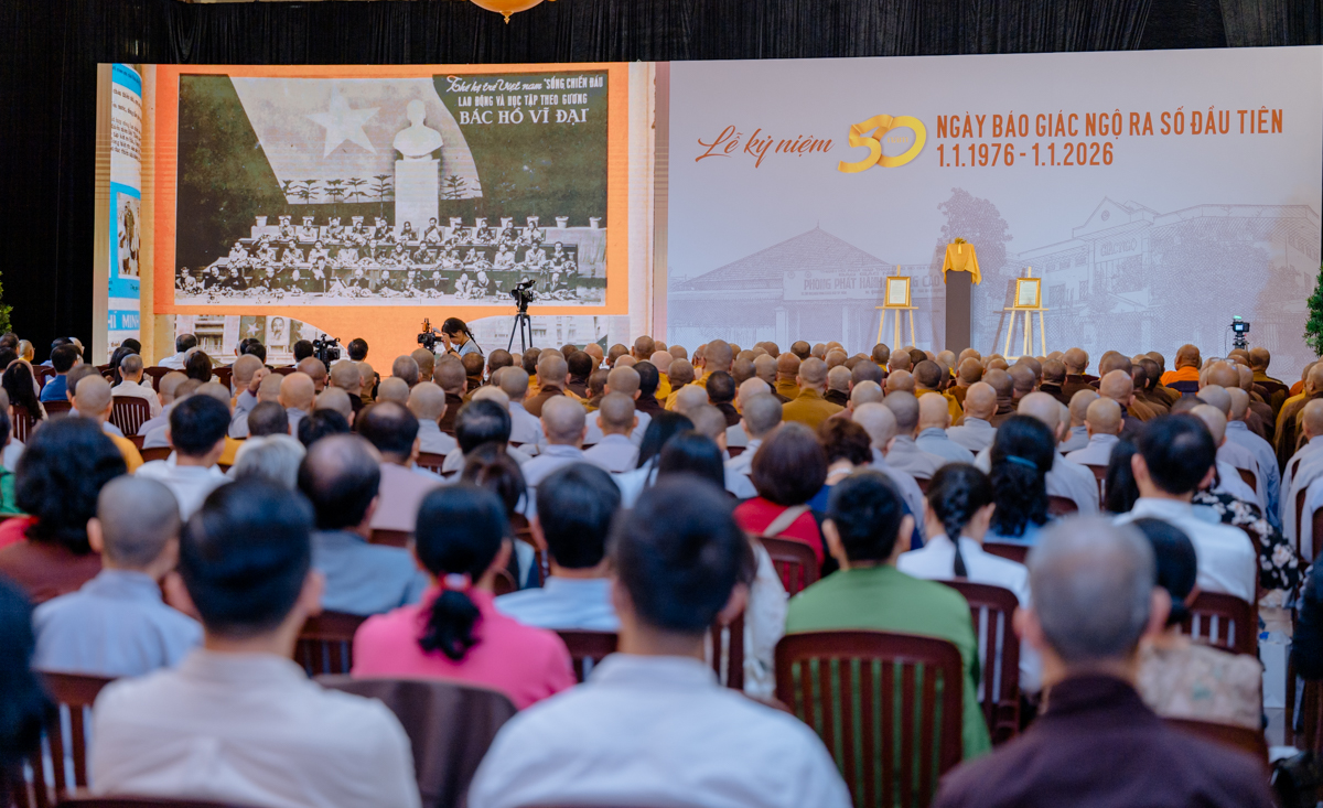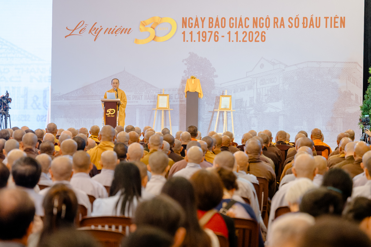 Sáng 31/12, tại Việt Nam Quốc Tự (TP.HCM), Báo Giác Ngộ long trọng tổ chức Lễ kỷ niệm 50 năm ngày ra số đầu tiên (1-1-1976 – 1-1-2026). Đại lão Hòa thượng Thích Trí Quảng – Pháp chủ GHPGVN; Trưởng lão Hòa thượng Thích Thiện Nhơn – Phó Pháp chủ Hội đồng Chứng minh, Chủ tịch Hội đồng Trị sự đã quang lâm tham dự và chúc mừng.