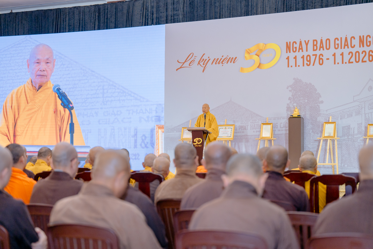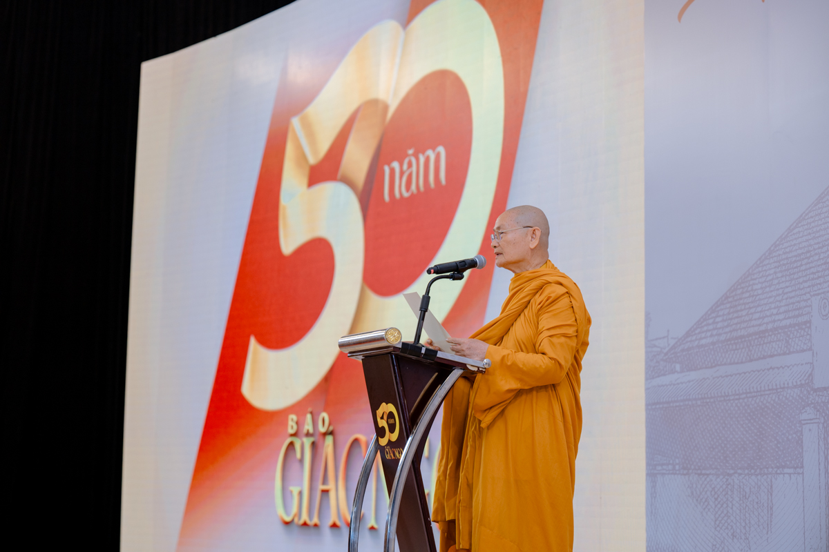 Thay mặt Ban Thường trực Hội đồng Trị sự, Trưởng lão Hòa thượng gửi lời chúc mừng đến tập thể những người làm Báo Giác Ngộ nhân sự kiện kỷ niệm 50 năm ngày ra số đầu tiên, đồng thời bày tỏ kỳ vọng đội ngũ làm báo tiếp tục giữ vững tinh thần “bút thép – tâm trong – trí sáng”, phản ánh trung thực, chính xác các hoạt động Phật sự, góp phần nâng cao uy tín của báo chí Phật giáo trong thế kỷ XXI.