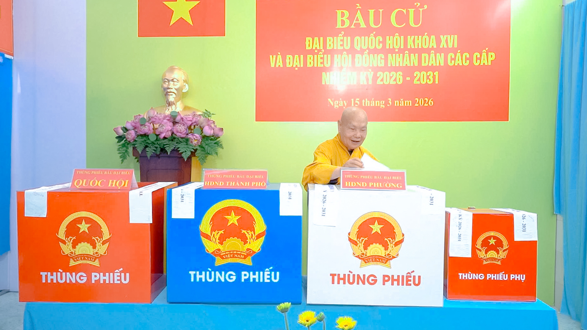 Sáng 15/3/2026, hòa chung không khí phấn khởi của Ngày hội non sông – cử tri cả nước tham gia bầu cử, Trưởng lão Hòa thượng Thích Thiện Nhơn – Phó Pháp chủ Hội đồng Chứng minh, Chủ tịch Hội đồng Trị sự đã đến khu vực bỏ phiếu tại đơn vị số 15, phường Nhiêu Lộc, TP.HCM, thực hiện quyền và nghĩa vụ công dân để bầu cử đại biểu Quốc hội khóa XVI và đại biểu Hội đồng nhân dân các cấp nhiệm kỳ 2026–2031.