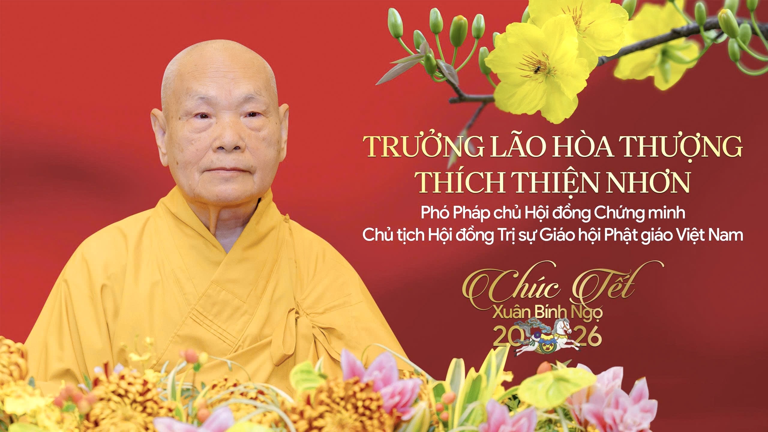 Nhân dịp Xuân Bính Ngọ – 2026, Ban Biên tập trân trọng giới thiệu Thông điệp đầu năm mới của Trưởng lão Hòa thượng Thích Thiện Nhơn – Phó Pháp chủ Hội đồng Chứng minh, Chủ tịch Hội đồng Trị sự Giáo hội Phật giáo Việt Nam, gửi đến chư Tôn đức Tăng Ni và toàn thể đồng bào Phật tử trong thời khắc thiêng liêng chuyển giao năm mới.