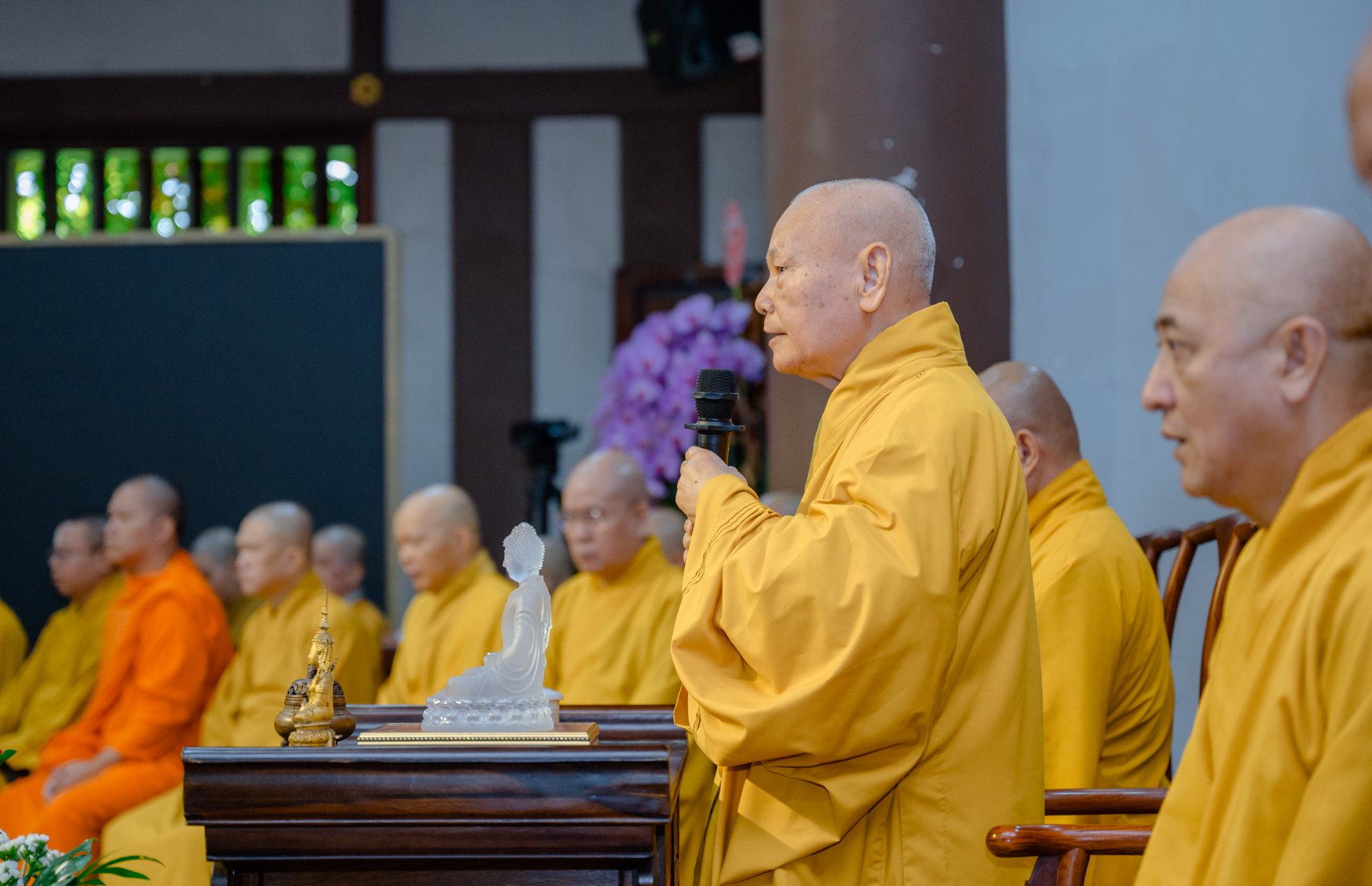 Trong lời đạo từ, Trưởng lão Hòa thượng Chủ tịch nhấn mạnh hành trình 120 năm gìn giữ “hồn dân tộc” của Tu viện Khánh An. Ngài dẫn lại câu thơ của Thiền sư Huyền Thông: “Mái chùa che chở hồn dân tộc/ Nếp sống muôn đời của tổ tông”, qua đó khẳng định vị thế của Tu viện Khánh An trong dòng chảy lịch sử Phật giáo và dân tộc, được Tổ Trí Hiền khai sơn cách đây 120 năm.