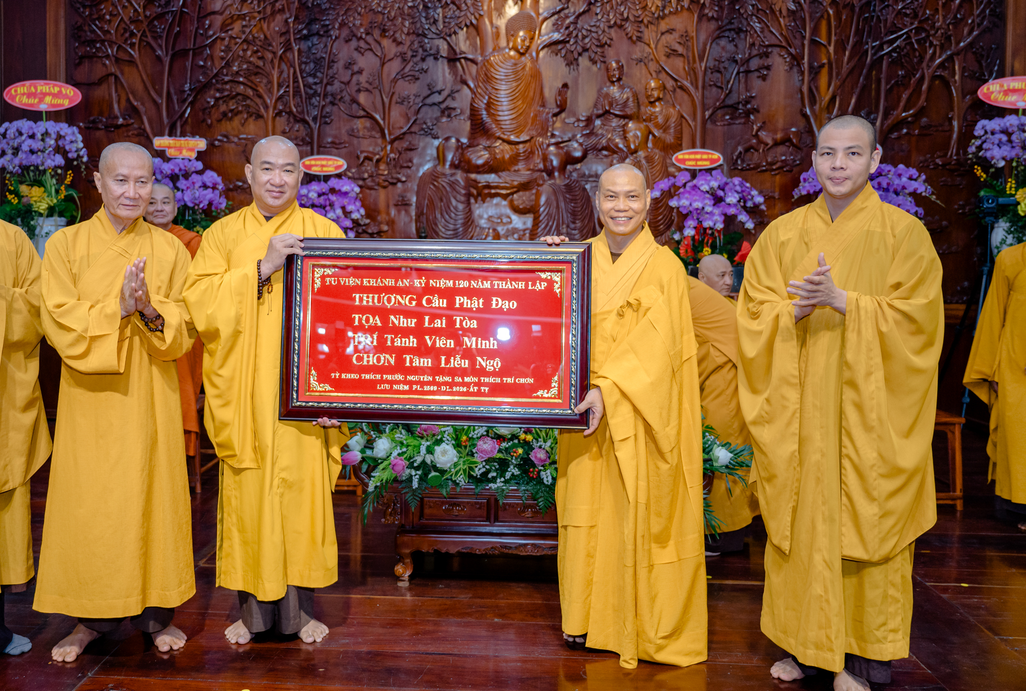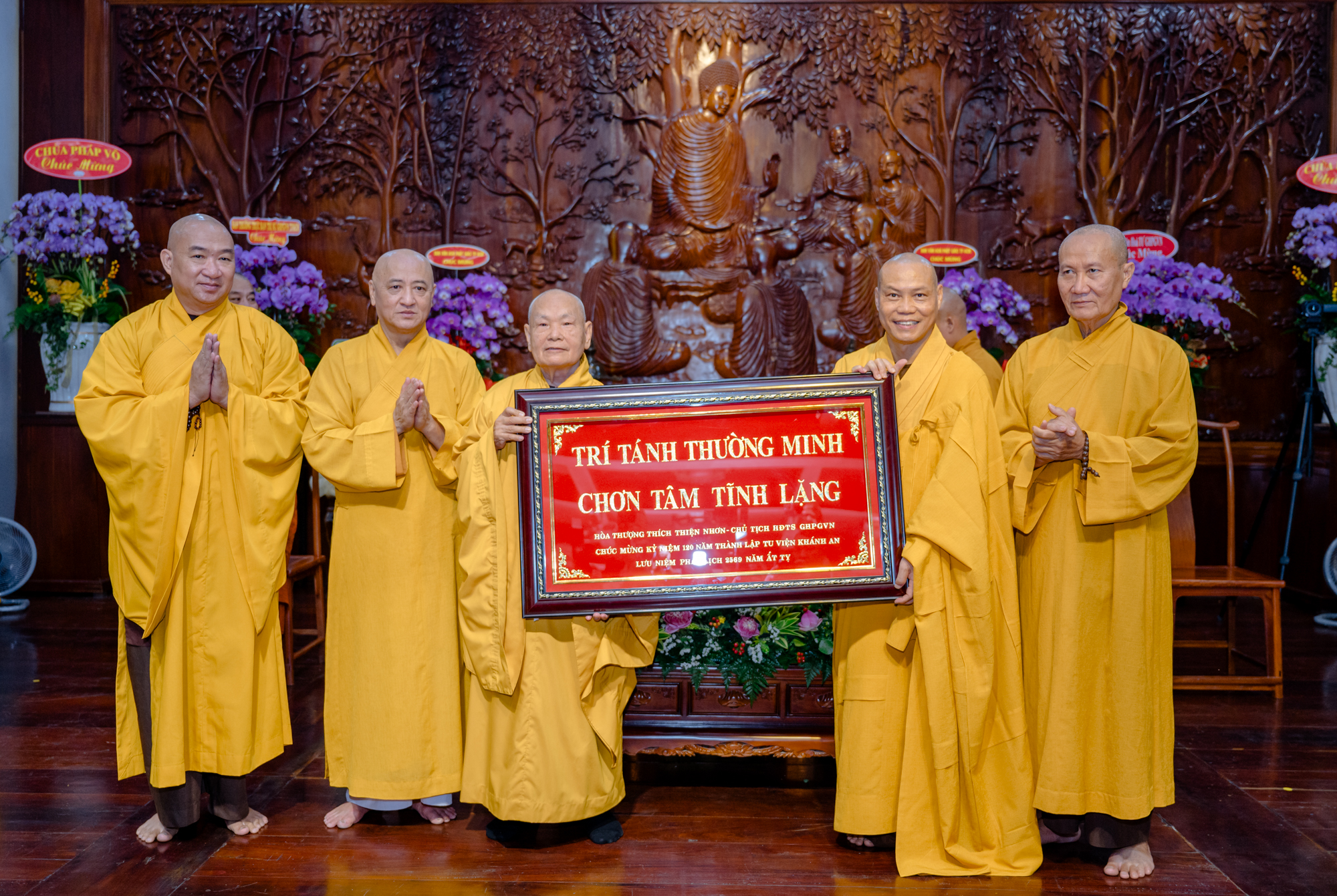 Sáng 25/1, Tu viện Khánh An (TP.HCM) long trọng tổ chức lễ kỷ niệm 120 năm ngày khai sơn và 30 năm Thượng tọa Thích Trí Chơn đảm nhiệm vai trò trụ trì. Chư Tăng và Phật tử đạo tràng Khánh An đã hoan hỷ cung đón Trưởng lão Hòa thượng Thích Thiện Nhơn – Phó Pháp chủ Hội đồng Chứng minh, Chủ tịch Hội đồng Trị sự quang lâm chứng minh, chúc mừng và ban đạo từ sách tấn tu học.