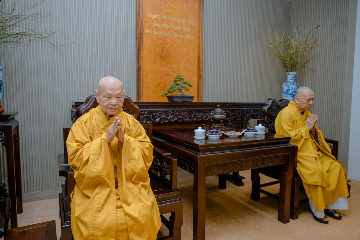 Tháp tùng có Trưởng lão Hòa thượng Thích Thiện Pháp, Ủy viên Thường trực Hội đồng Chứng minh, Phó Chủ tịch Thường trực Hội đồng Trị sự; Thượng tọa Thích Phước Nguyên, Phó Tổng Thư ký kiêm Chánh Văn phòng 2 Trung ương, cùng chư tôn đức Văn phòng 2 Trung ương.