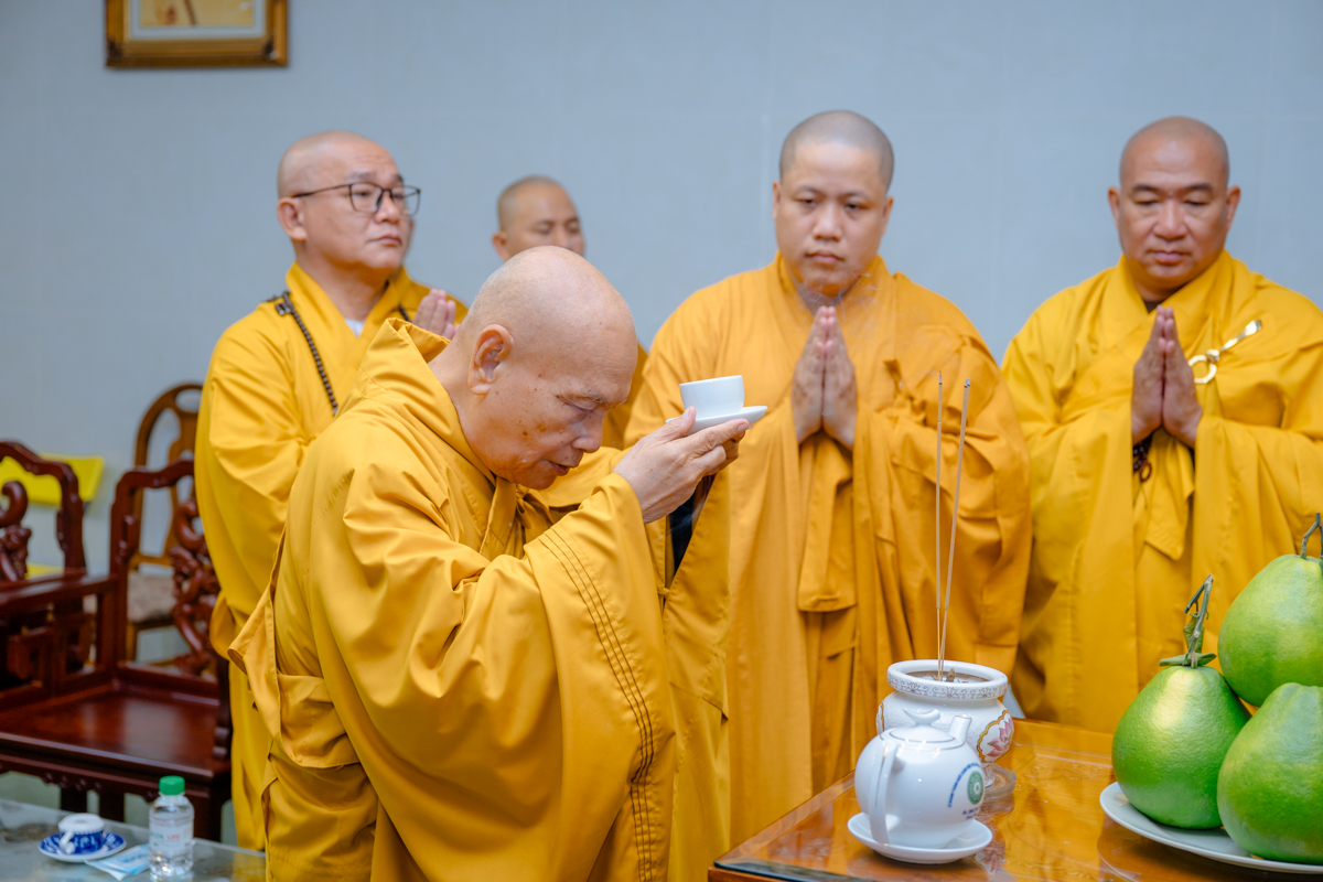 Đến Chùa Vạn Đức, chư tôn đức dâng hương tưởng niệm Trưởng lão Hòa thượng Thích Trí Tịnh, Phó Pháp chủ Hội đồng Chứng minh, Đệ nhị Chủ tịch Hội đồng Trị sự – bậc danh tăng nổi bật trong lĩnh vực phiên dịch kinh điển và hoằng pháp.