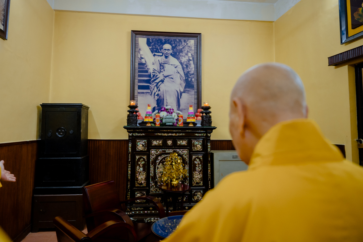 Đến Chùa Xá Lợi, phái đoàn thăm lại thiền thất và dâng hương tưởng niệm Trưởng lão Hòa thượng Thích Hiển Tu, Phó Pháp chủ Hội đồng Chứng minh – bậc cao tăng tiêu biểu về đạo hạnh và tinh thần trách nhiệm.